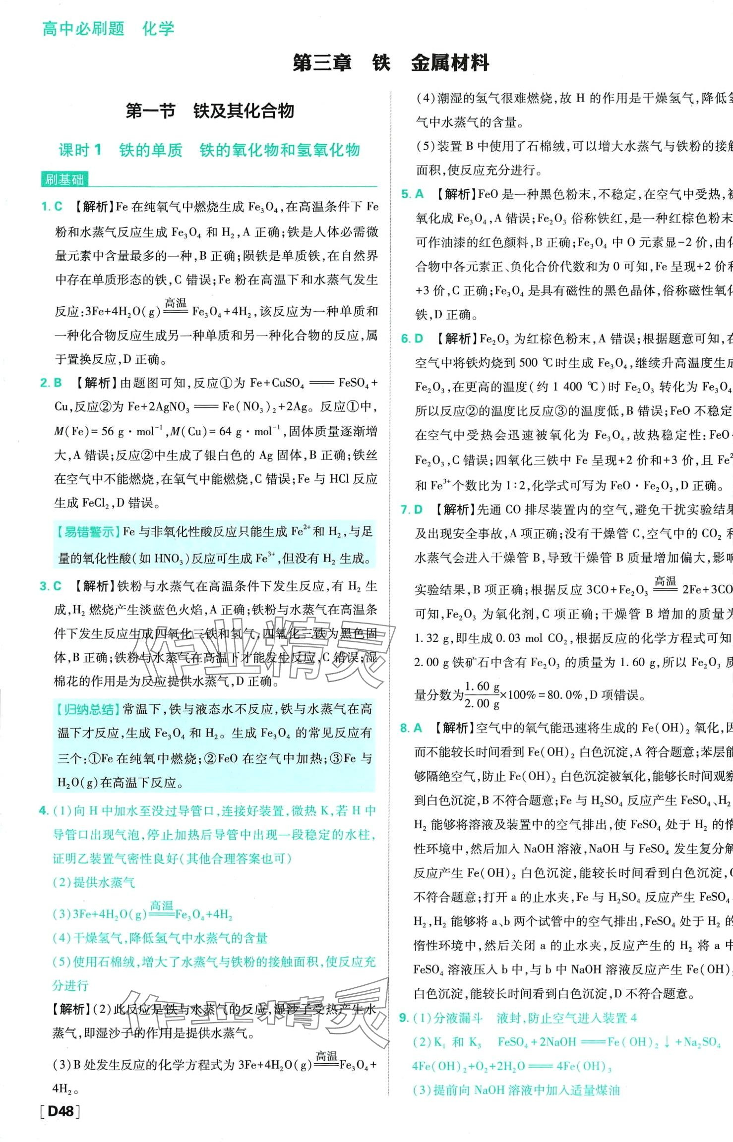 注:目前有些书本章节名称可能整理的还不是很完善,但都是按照顺序排列的,请同学们按照顺序仔细查找。练习册 2024年高中必刷题化学必修第一册人教版 答案主要是用来给同学们做完题方便对答案用的,请勿直接抄袭。