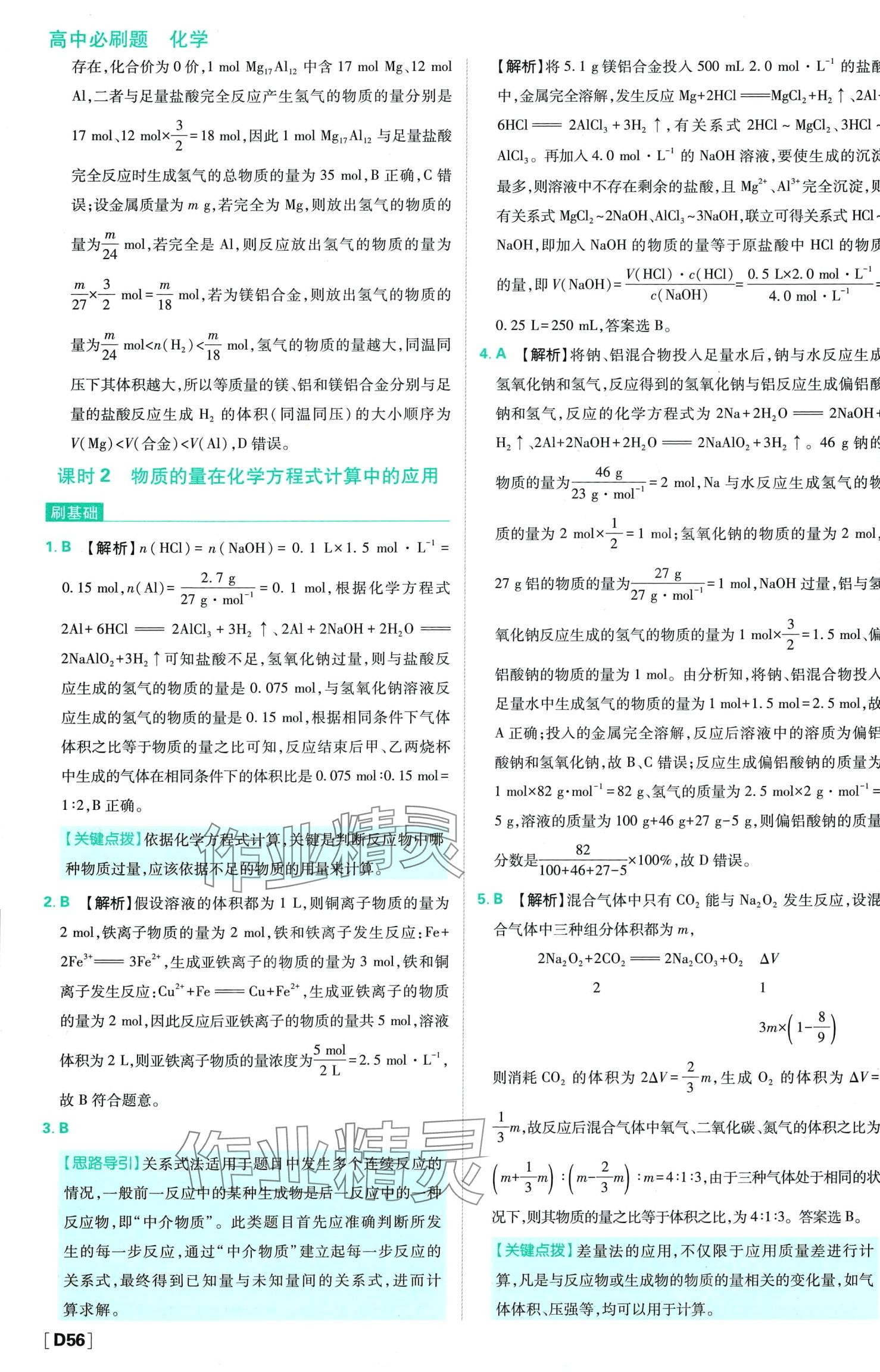注:目前有些书本章节名称可能整理的还不是很完善,但都是按照顺序排列的,请同学们按照顺序仔细查找。练习册 2024年高中必刷题化学必修第一册人教版 答案主要是用来给同学们做完题方便对答案用的,请勿直接抄袭。