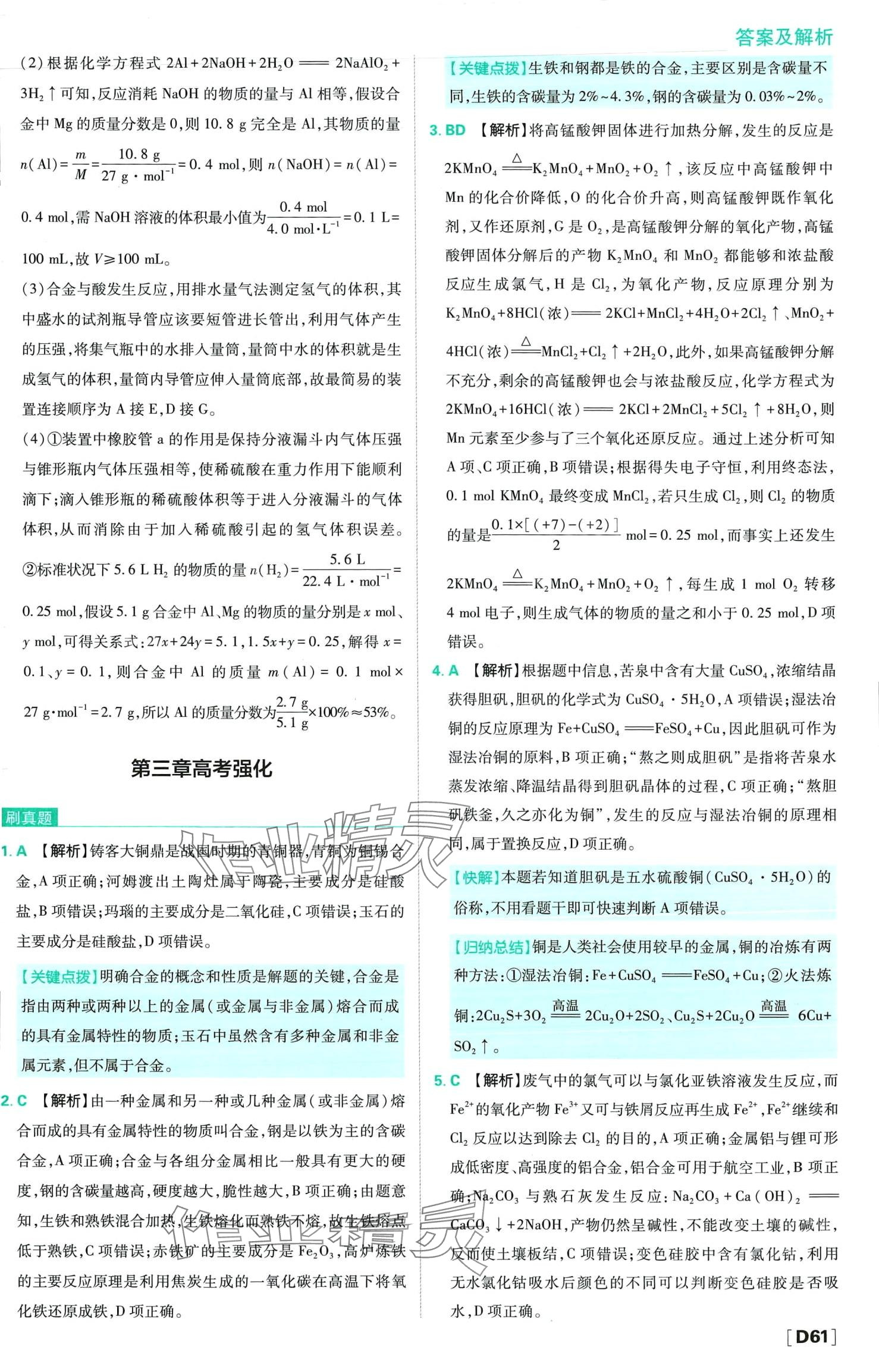 注:目前有些书本章节名称可能整理的还不是很完善,但都是按照顺序排列的,请同学们按照顺序仔细查找。练习册 2024年高中必刷题化学必修第一册人教版 答案主要是用来给同学们做完题方便对答案用的,请勿直接抄袭。