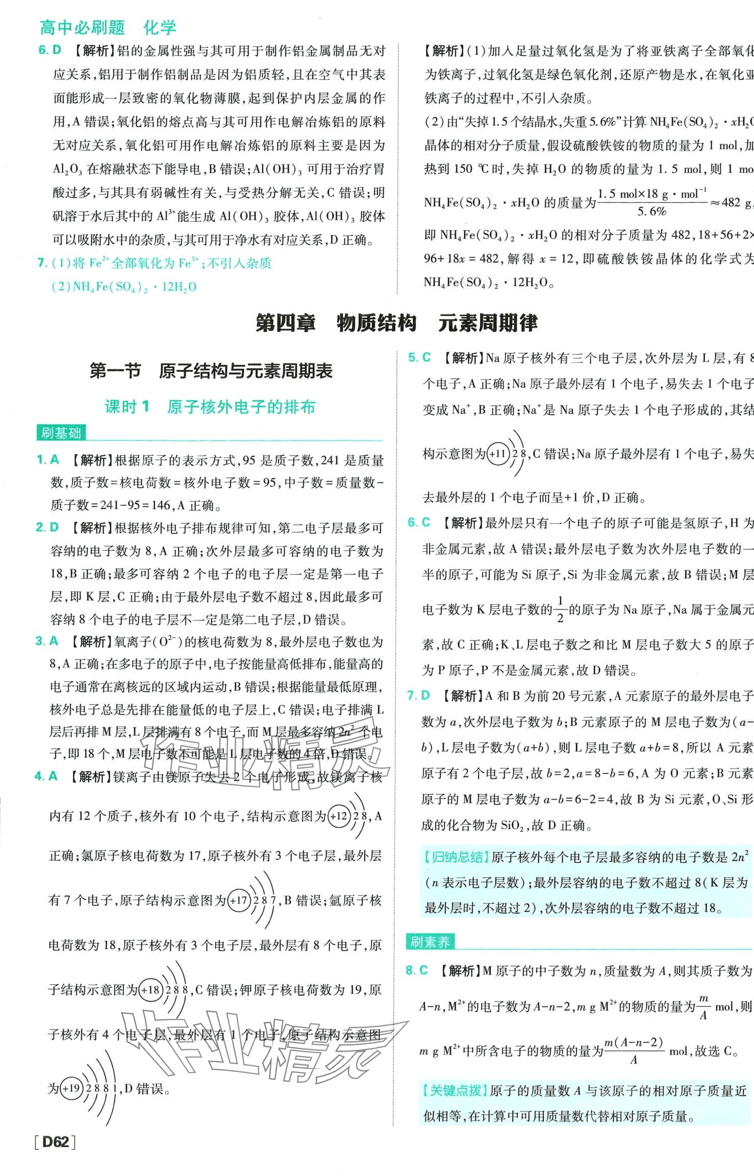 注:目前有些书本章节名称可能整理的还不是很完善,但都是按照顺序排列的,请同学们按照顺序仔细查找。练习册 2024年高中必刷题化学必修第一册人教版 答案主要是用来给同学们做完题方便对答案用的,请勿直接抄袭。
