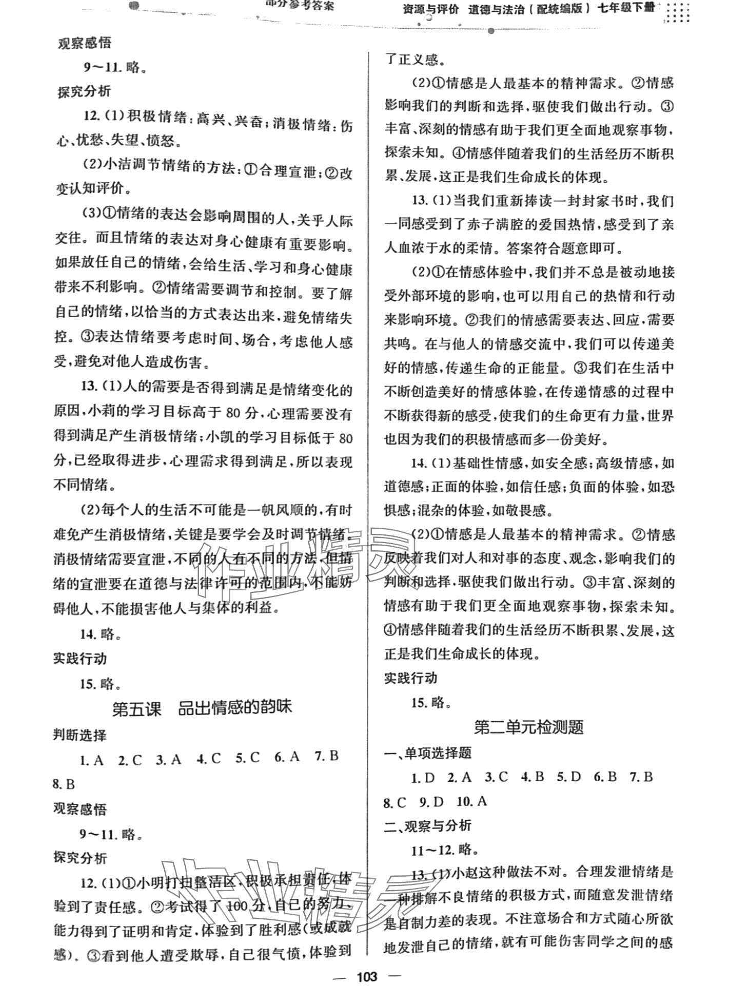 注:目前有些书本章节名称可能整理的还不是很完善,但都是按照顺序排列的,请同学们按照顺序仔细查找。练习册 2024年同步测控优化设计资源与评价七年级道德与法治下册人教版 答案主要是用来给同学们做完题方便对答案用的,请勿直接抄袭。