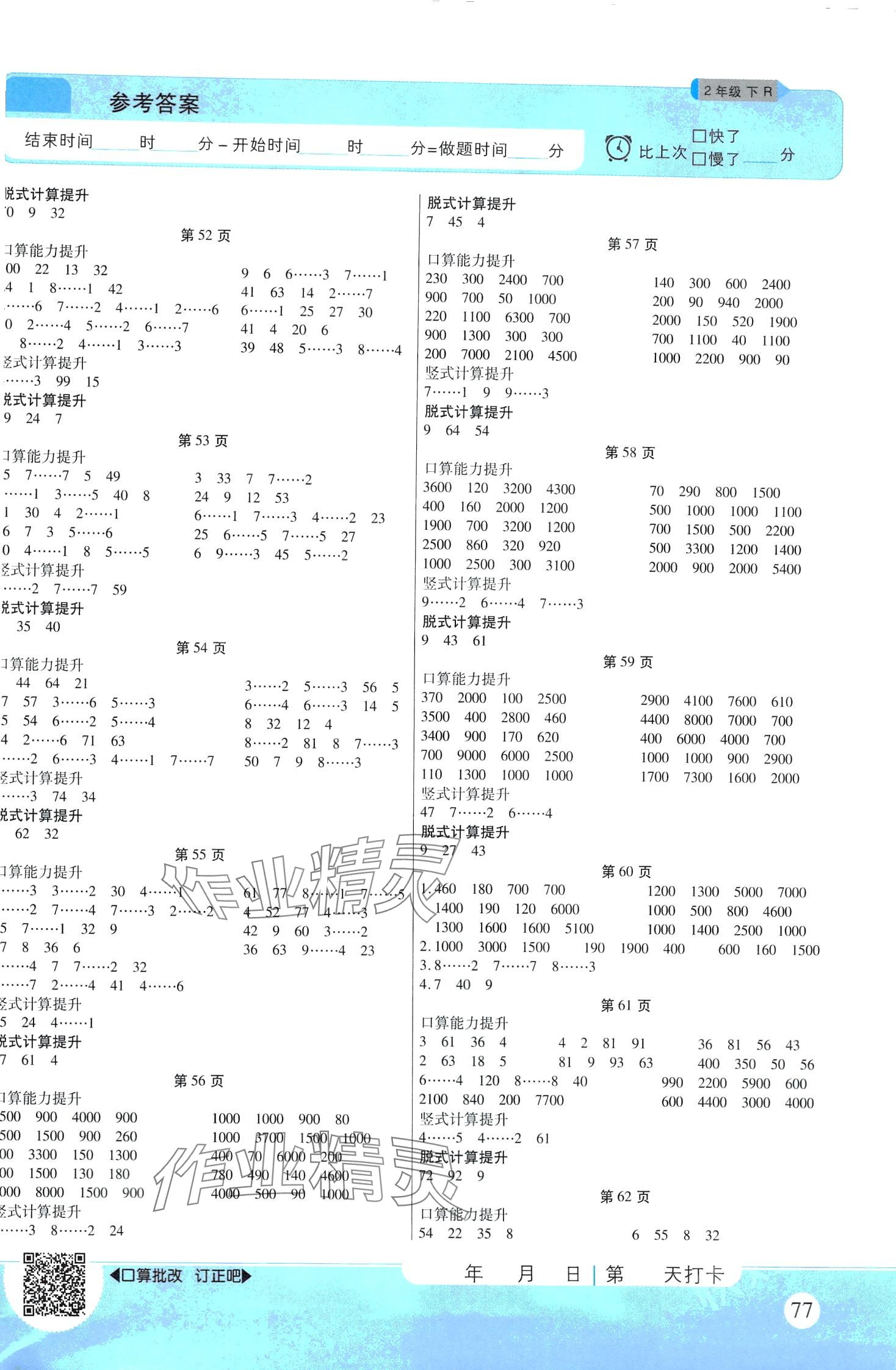 注:目前有些书本章节名称可能整理的还不是很完善,但都是按照顺序排列的,请同学们按照顺序仔细查找。练习册 2024年优佳好口算计算能力提升二年级下册人教版 答案主要是用来给同学们做完题方便对答案用的,请勿直接抄袭。