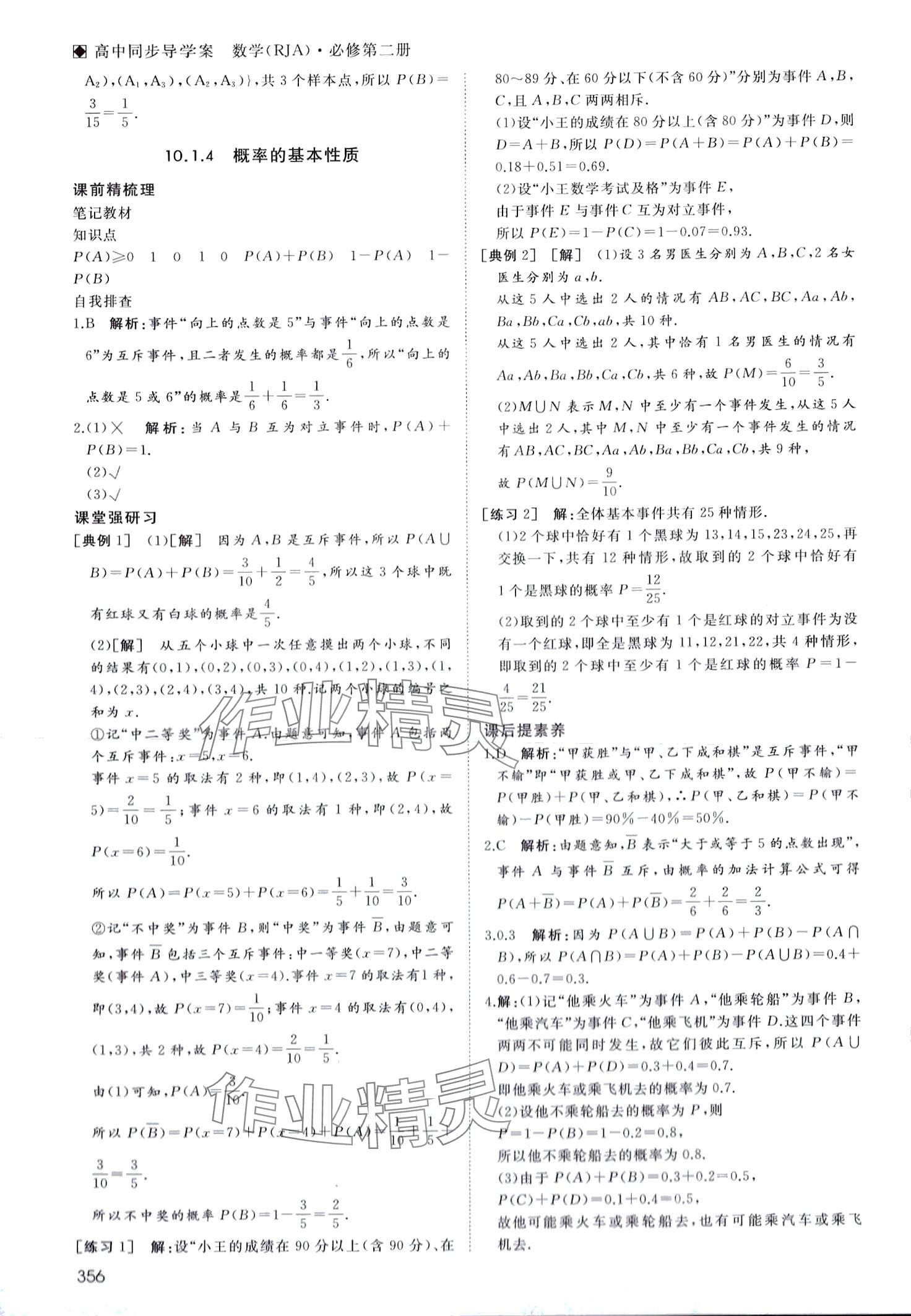 注:目前有些书本章节名称可能整理的还不是很完善,但都是按照顺序排列的,请同学们按照顺序仔细查找。练习册 2024年名师伴你行高中同步导学案高中数学必修第二册 答案主要是用来给同学们做完题方便对答案用的,请勿直接抄袭。