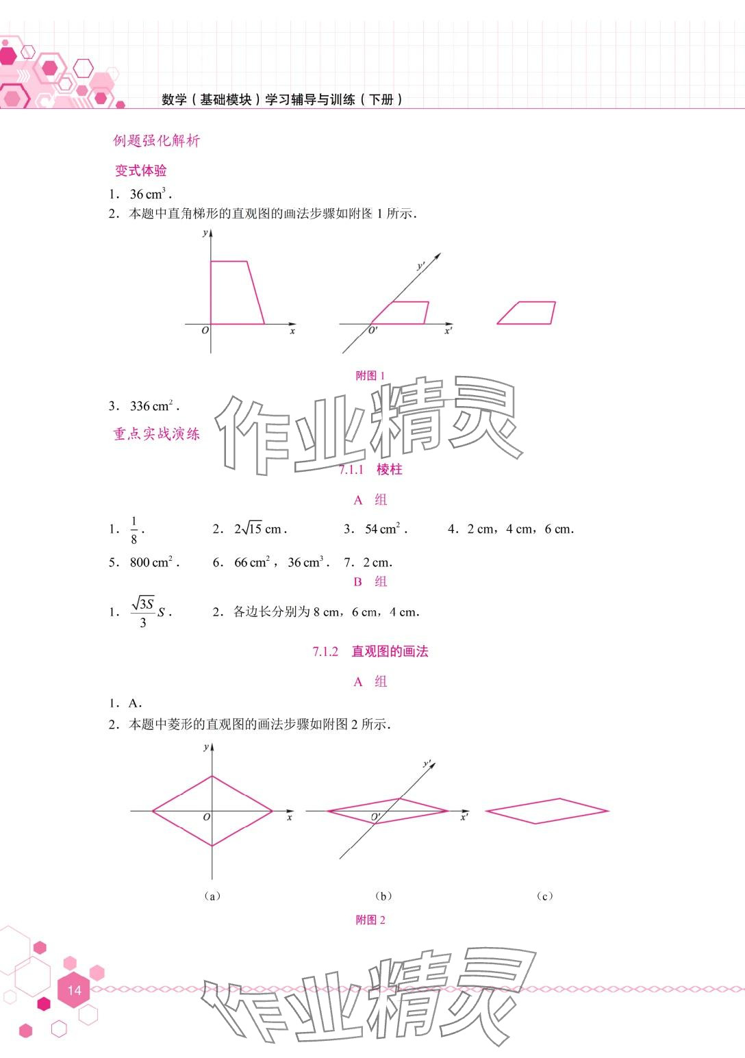 注:目前有些书本章节名称可能整理的还不是很完善,但都是按照顺序排列的,请同学们按照顺序仔细查找。练习册 2024年学习辅导与训练基础模块中职数学下册 答案主要是用来给同学们做完题方便对答案用的,请勿直接抄袭。