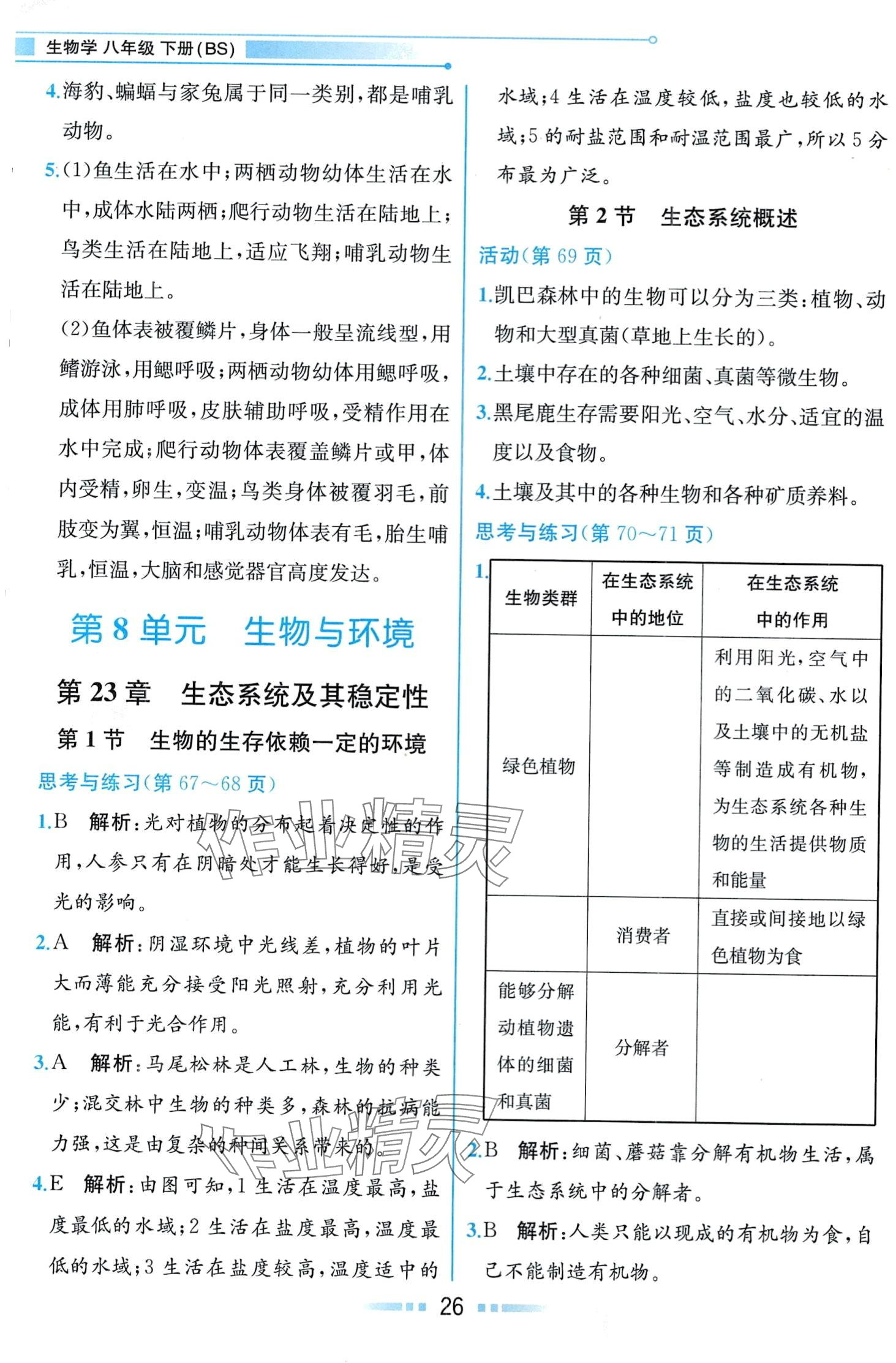 注:目前有些书本章节名称可能整理的还不是很完善,但都是按照顺序排列的,请同学们按照顺序仔细查找。练习册 2024年教材课本八年级生物下册北师大版 答案主要是用来给同学们做完题方便对答案用的,请勿直接抄袭。