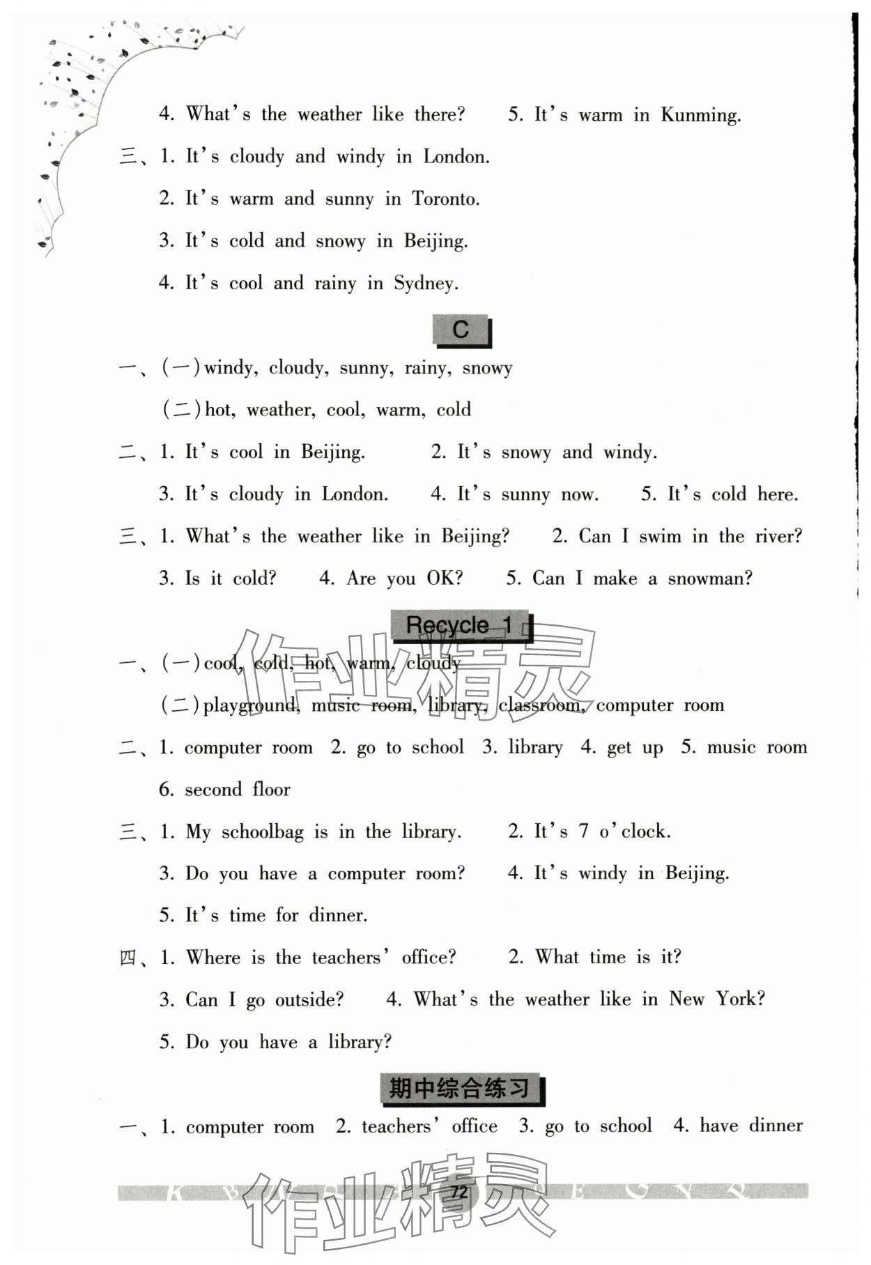注:目前有些书本章节名称可能整理的还不是很完善,但都是按照顺序排列的,请同学们按照顺序仔细查找。练习册 2024年同步练习册海燕出版社四年级英语下册人教版 答案主要是用来给同学们做完题方便对答案用的,请勿直接抄袭。