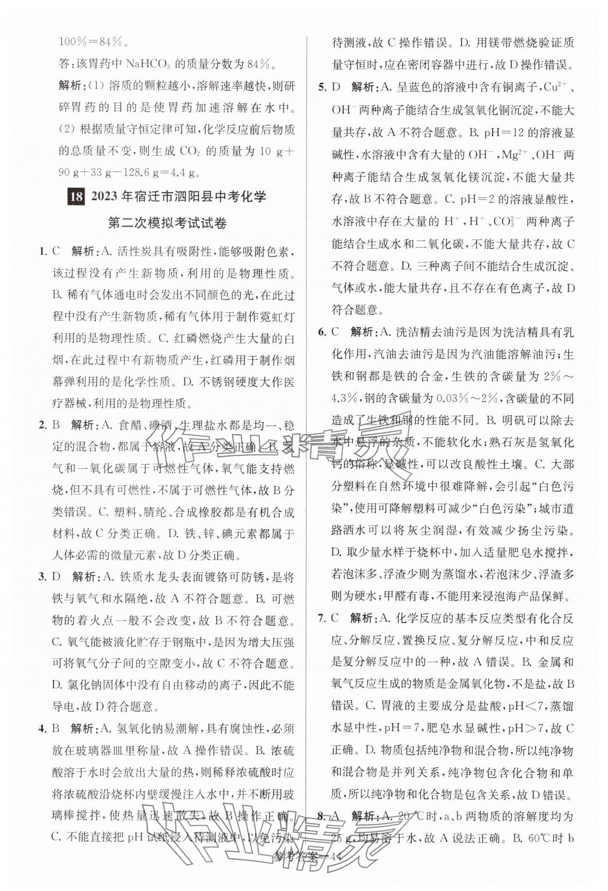 注:目前有些书本章节名称可能整理的还不是很完善,但都是按照顺序排列的,请同学们按照顺序仔细查找。练习册 2024年中考总复习一卷通化学宿迁专版 答案主要是用来给同学们做完题方便对答案用的,请勿直接抄袭。