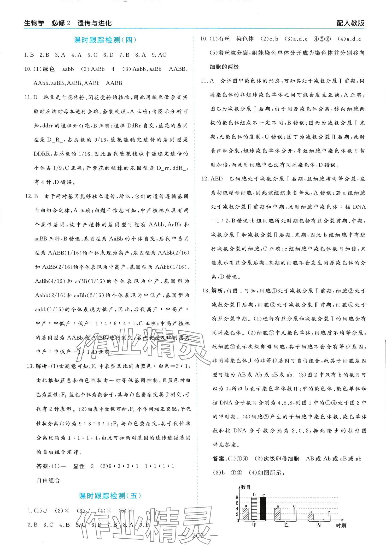 注:目前有些书本章节名称可能整理的还不是很完善,但都是按照顺序排列的,请同学们按照顺序仔细查找。练习册 2024年新课程学习指导高中生物必修2人教版 答案主要是用来给同学们做完题方便对答案用的,请勿直接抄袭。