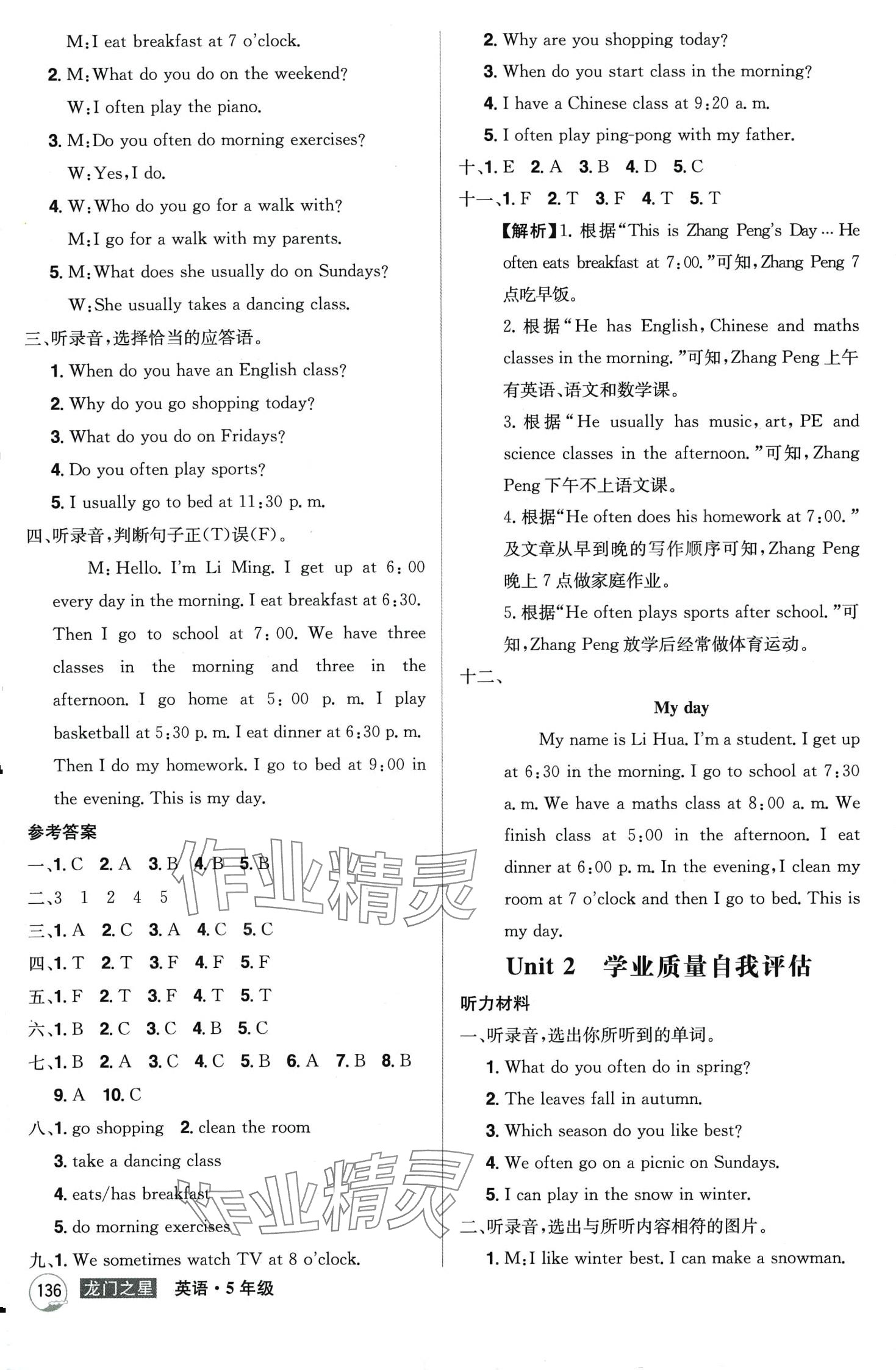 注:目前有些书本章节名称可能整理的还不是很完善,但都是按照顺序排列的,请同学们按照顺序仔细查找。练习册 2024年龙门之星五年级英语下册人教版 答案主要是用来给同学们做完题方便对答案用的,请勿直接抄袭。