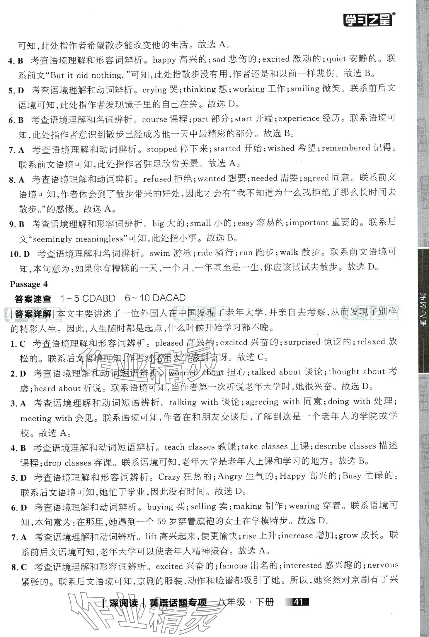 注:目前有些书本章节名称可能整理的还不是很完善,但都是按照顺序排列的,请同学们按照顺序仔细查找。练习册 2024年学习之星深阅读八年级英语下册 答案主要是用来给同学们做完题方便对答案用的,请勿直接抄袭。