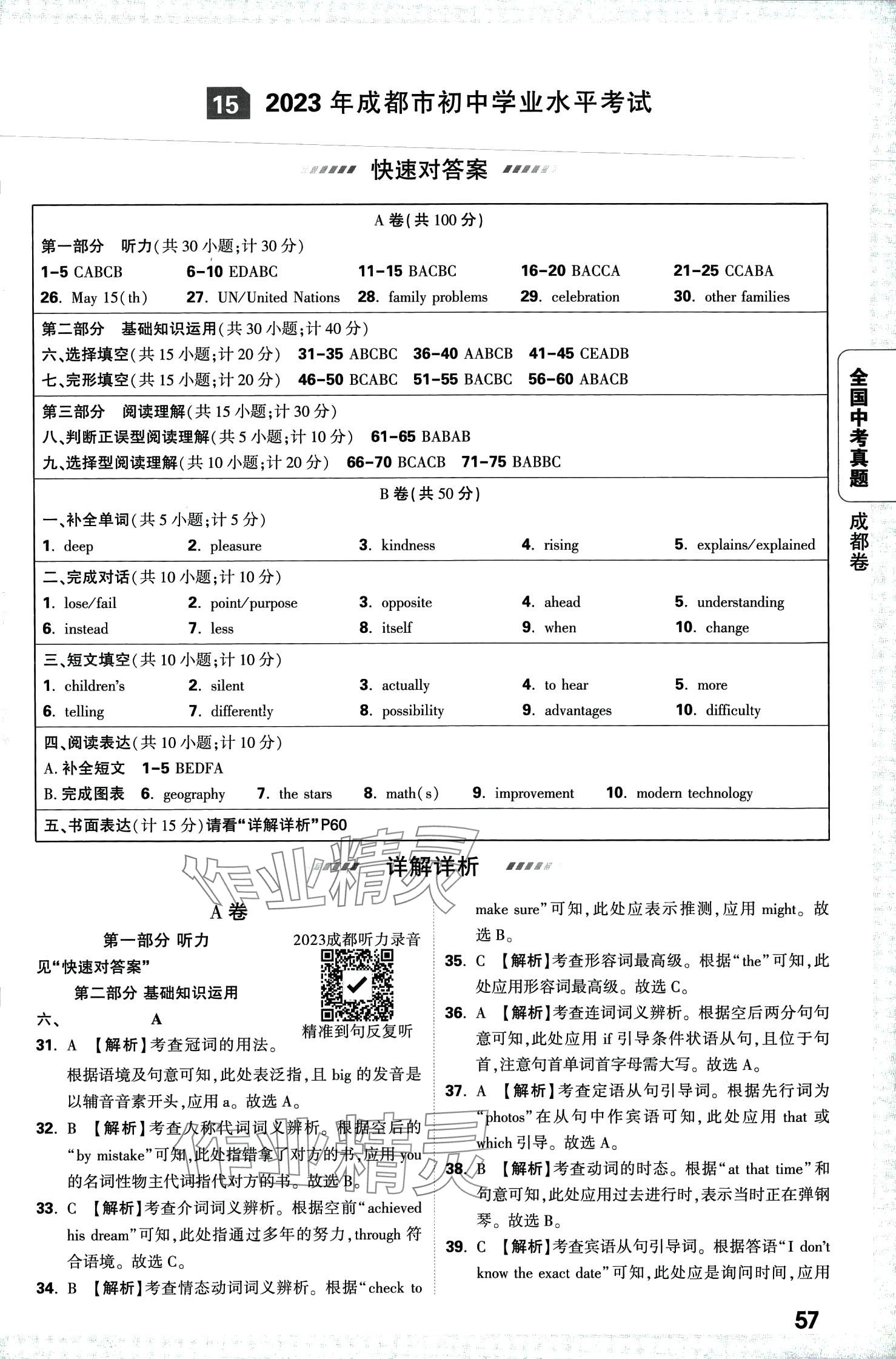 2024年万唯中考真题英语