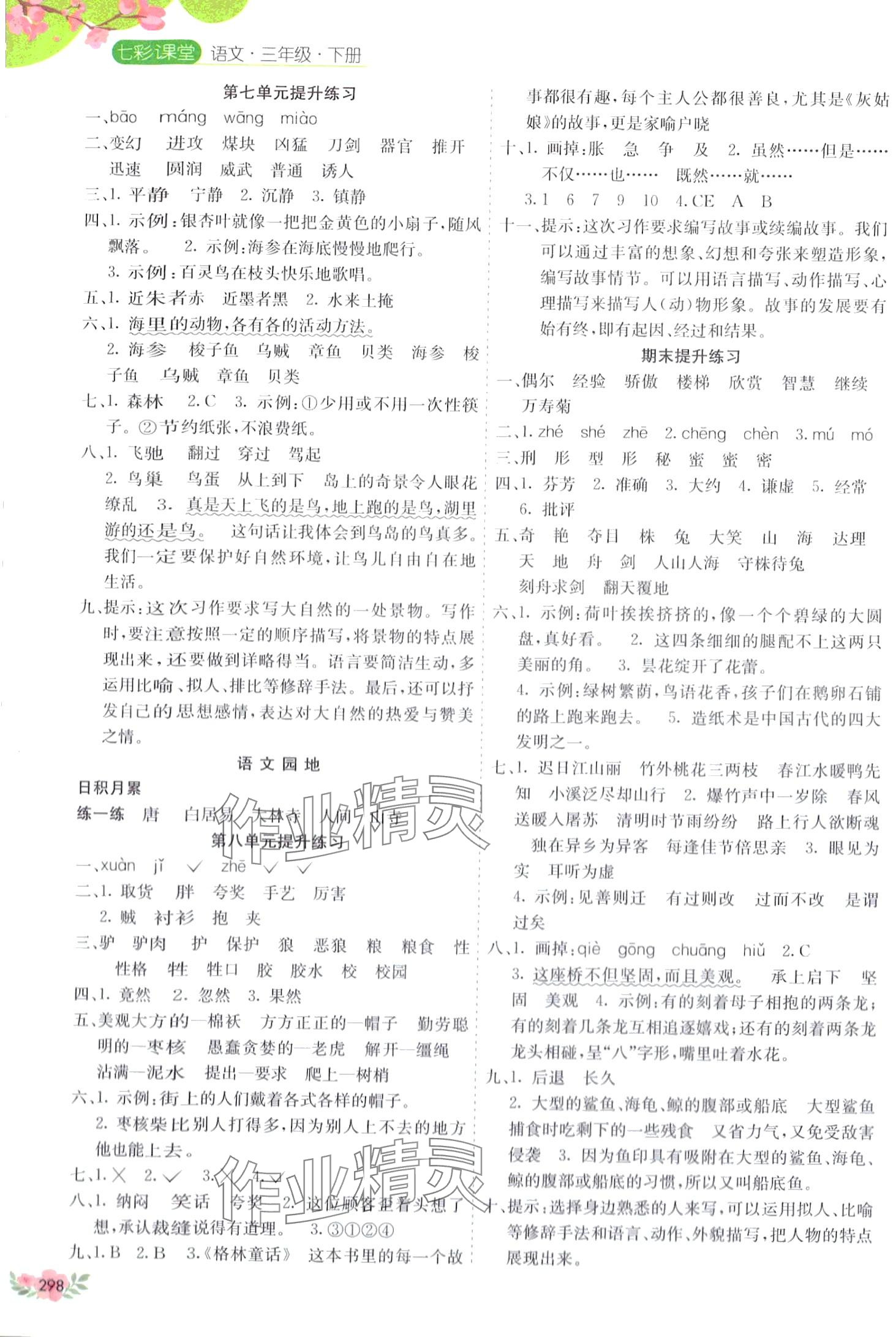 注:目前有些书本章节名称可能整理的还不是很完善,但都是按照顺序排列的,请同学们按照顺序仔细查找。练习册 2024年七彩课堂三年级语文下册人教版 答案主要是用来给同学们做完题方便对答案用的,请勿直接抄袭。