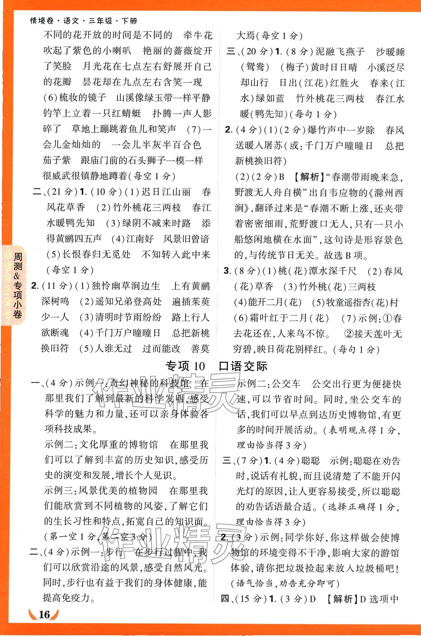 注:目前有些书本章节名称可能整理的还不是很完善,但都是按照顺序排列的,请同学们按照顺序仔细查找。练习册 2024年小白鸥情境卷三年级语文下册人教版 答案主要是用来给同学们做完题方便对答案用的,请勿直接抄袭。