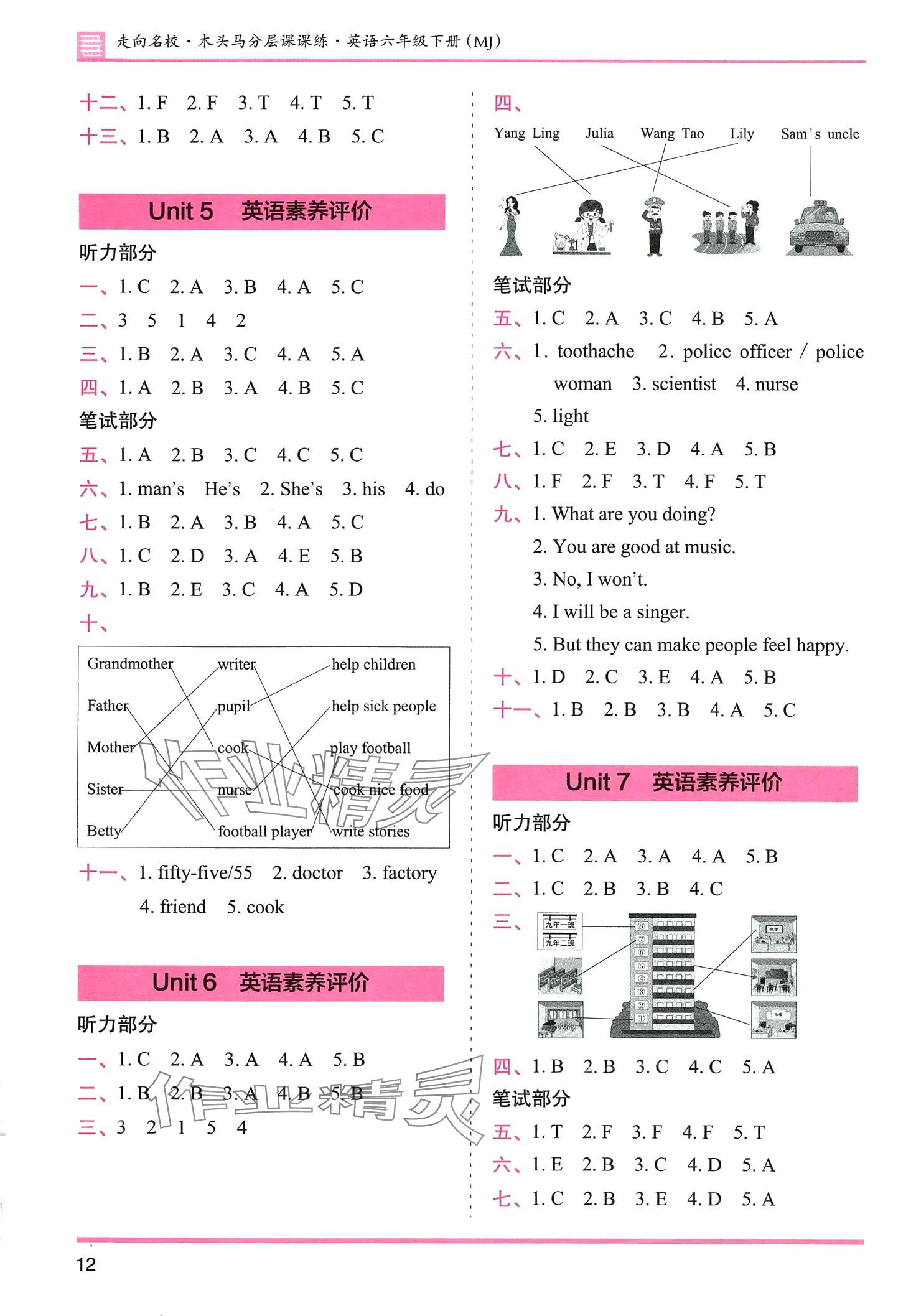 注:目前有些书本章节名称可能整理的还不是很完善,但都是按照顺序排列的,请同学们按照顺序仔细查找。练习册 2024年木头马分层课课练六年级英语下册闽教版 答案主要是用来给同学们做完题方便对答案用的,请勿直接抄袭。