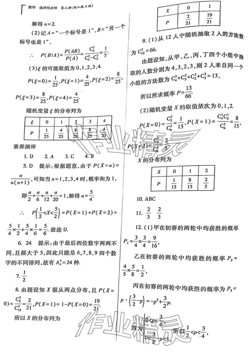 注:目前有些书本章节名称可能整理的还不是很完善,但都是按照顺序排列的,请同学们按照顺序仔细查找。练习册 2024年普通高中新课程同步练习册高中数学选择性必修第三册人教版 答案主要是用来给同学们做完题方便对答案用的,请勿直接抄袭。