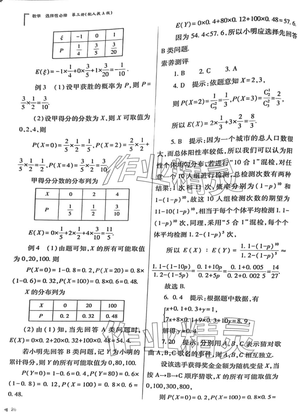 注:目前有些书本章节名称可能整理的还不是很完善,但都是按照顺序排列的,请同学们按照顺序仔细查找。练习册 2024年普通高中新课程同步练习册高中数学选择性必修第三册人教版 答案主要是用来给同学们做完题方便对答案用的,请勿直接抄袭。