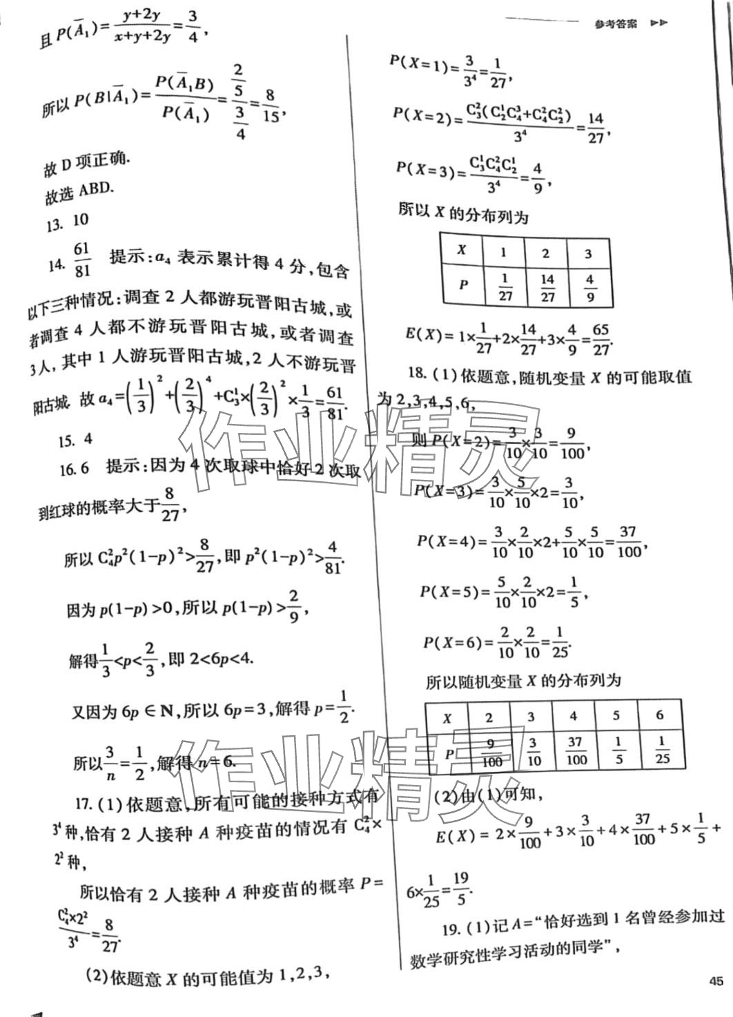 注:目前有些书本章节名称可能整理的还不是很完善,但都是按照顺序排列的,请同学们按照顺序仔细查找。练习册 2024年普通高中新课程同步练习册高中数学选择性必修第三册人教版 答案主要是用来给同学们做完题方便对答案用的,请勿直接抄袭。