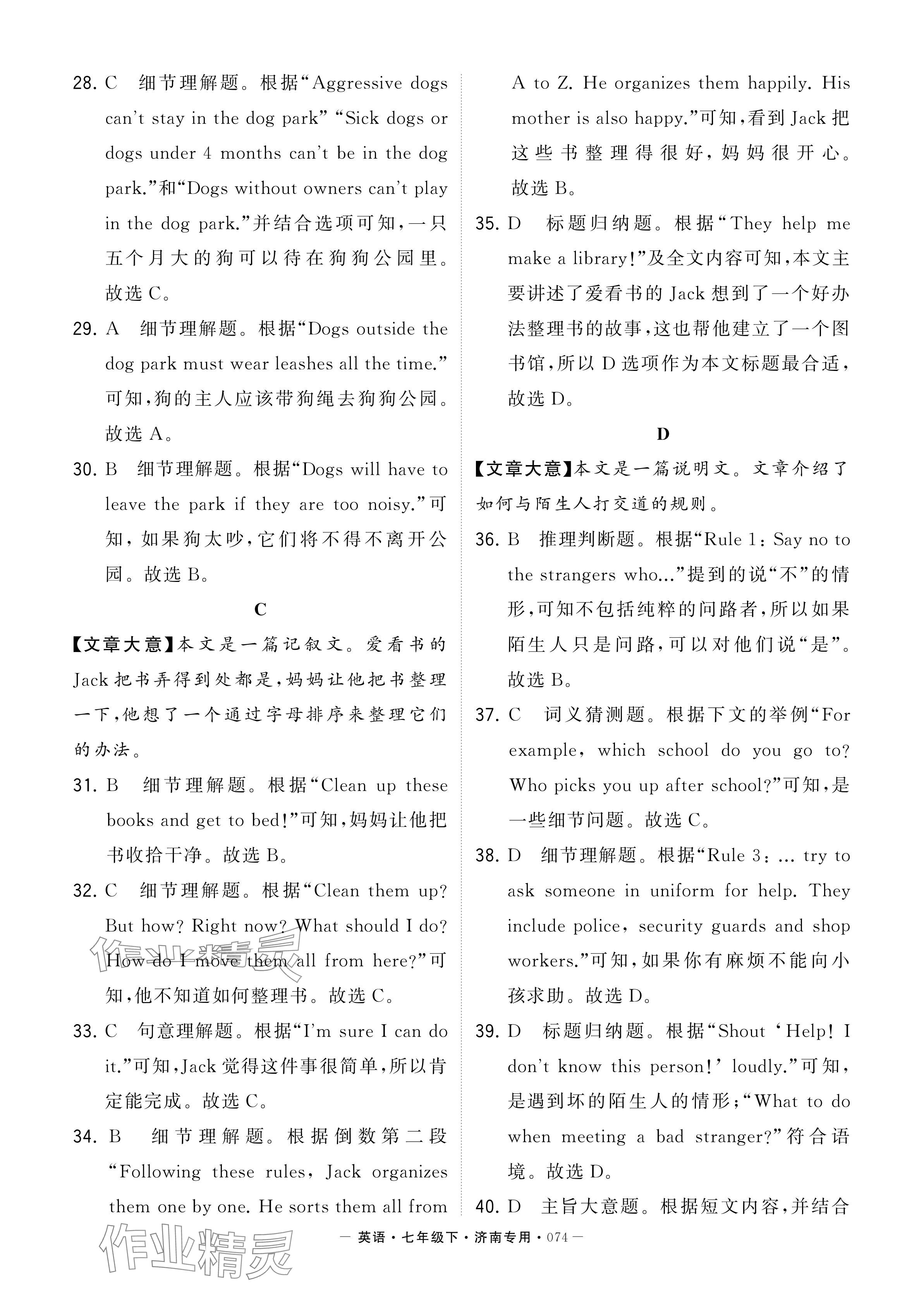 注:目前有些书本章节名称可能整理的还不是很完善,但都是按照顺序排列的,请同学们按照顺序仔细查找。练习册 2024年学霸组合训练七年级英语下册人教版济南专版 答案主要是用来给同学们做完题方便对答案用的,请勿直接抄袭。