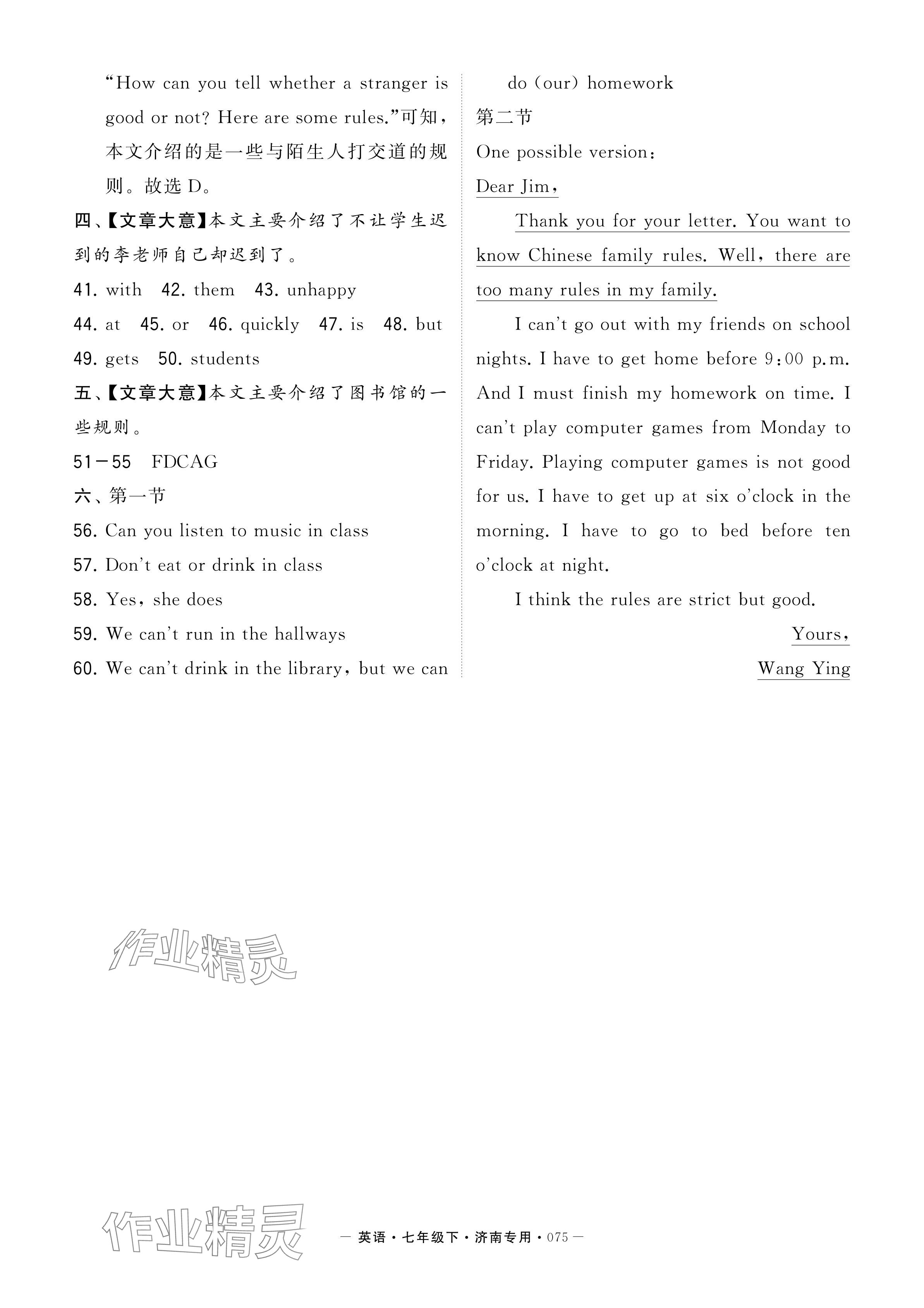 注:目前有些书本章节名称可能整理的还不是很完善,但都是按照顺序排列的,请同学们按照顺序仔细查找。练习册 2024年学霸组合训练七年级英语下册人教版济南专版 答案主要是用来给同学们做完题方便对答案用的,请勿直接抄袭。