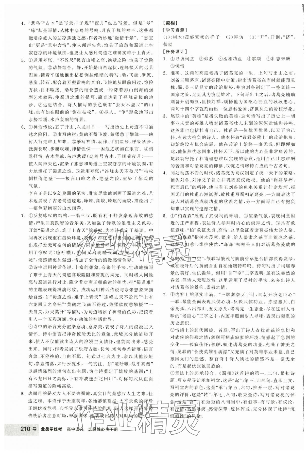 注:目前有些书本章节名称可能整理的还不是很完善,但都是按照顺序排列的,请同学们按照顺序仔细查找。练习册 2024年全品学练考高中语文选择性必修下册人教版 答案主要是用来给同学们做完题方便对答案用的,请勿直接抄袭。