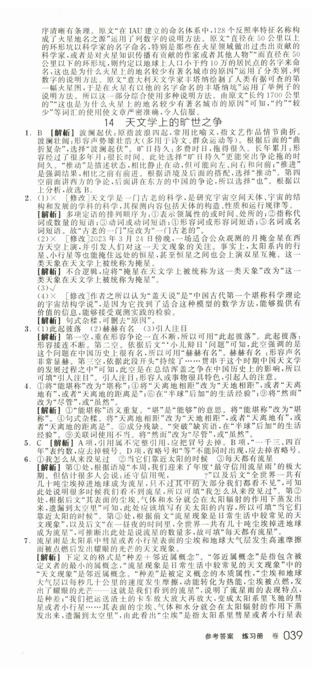 注:目前有些书本章节名称可能整理的还不是很完善,但都是按照顺序排列的,请同学们按照顺序仔细查找。练习册 2024年全品学练考高中语文选择性必修下册人教版 答案主要是用来给同学们做完题方便对答案用的,请勿直接抄袭。
