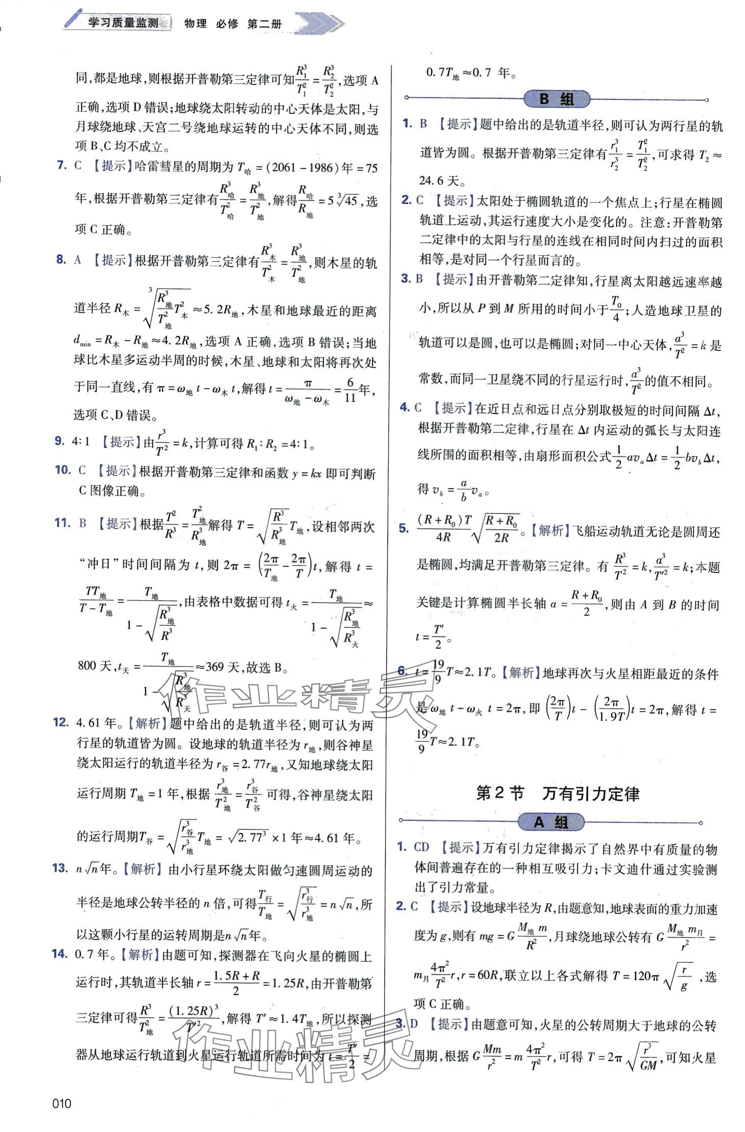 注:目前有些书本章节名称可能整理的还不是很完善,但都是按照顺序排列的,请同学们按照顺序仔细查找。练习册 2024年学习质量监测高中物理必修第二册人教版 答案主要是用来给同学们做完题方便对答案用的,请勿直接抄袭。