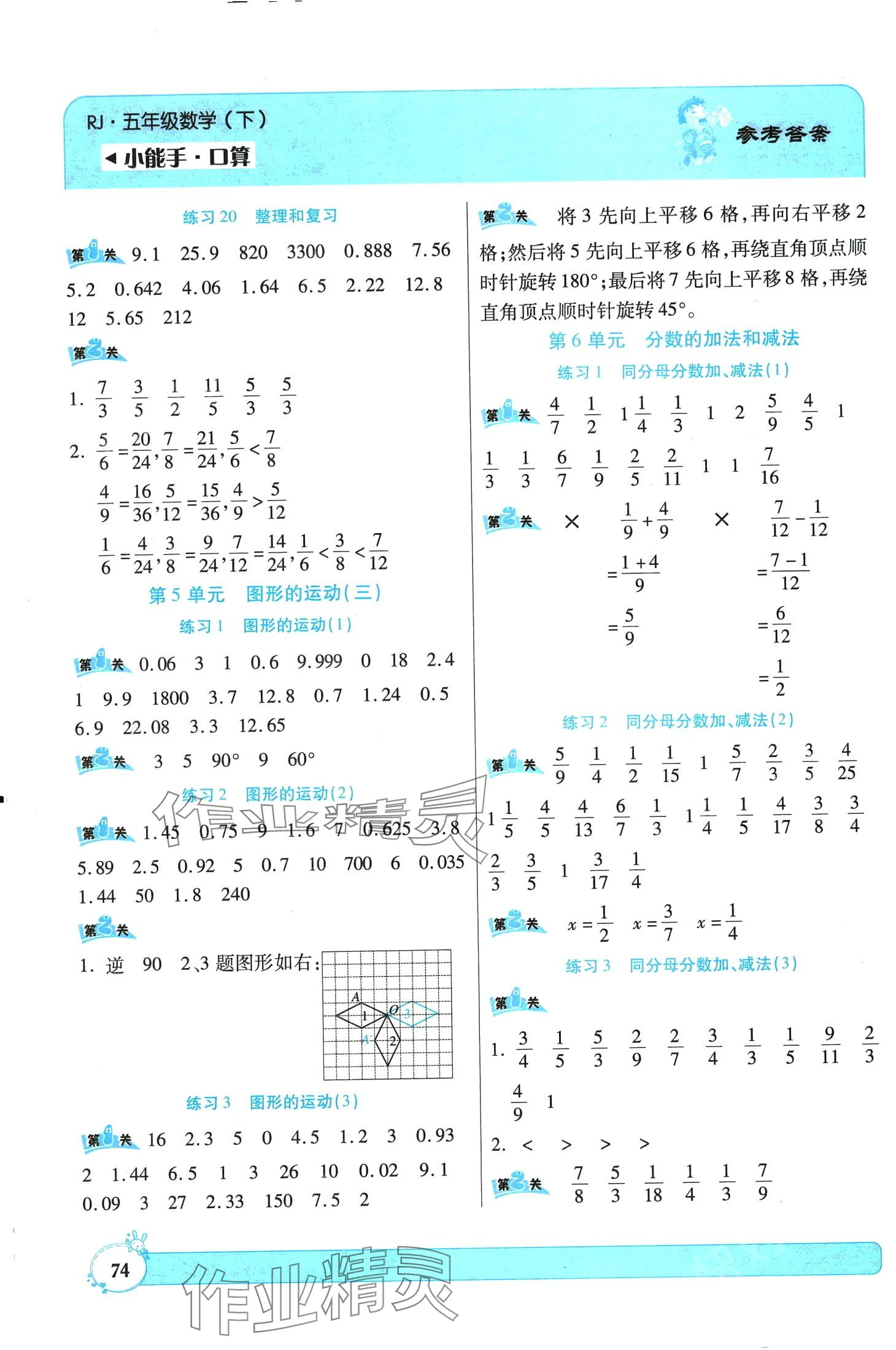 注:目前有些书本章节名称可能整理的还不是很完善,但都是按照顺序排列的,请同学们按照顺序仔细查找。练习册 2024年小能手口算五年级数学下册人教版 答案主要是用来给同学们做完题方便对答案用的,请勿直接抄袭。