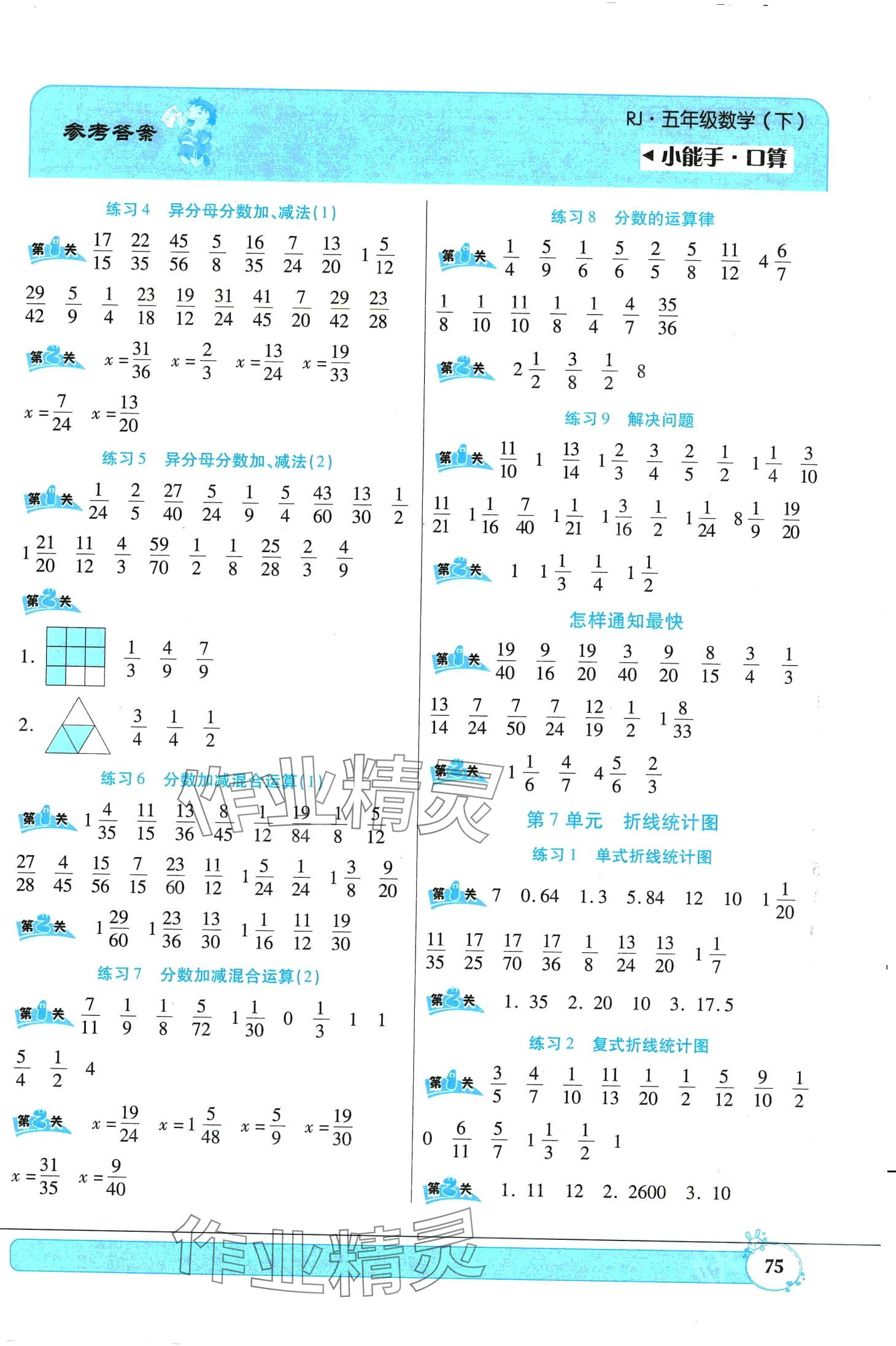 注:目前有些书本章节名称可能整理的还不是很完善,但都是按照顺序排列的,请同学们按照顺序仔细查找。练习册 2024年小能手口算五年级数学下册人教版 答案主要是用来给同学们做完题方便对答案用的,请勿直接抄袭。