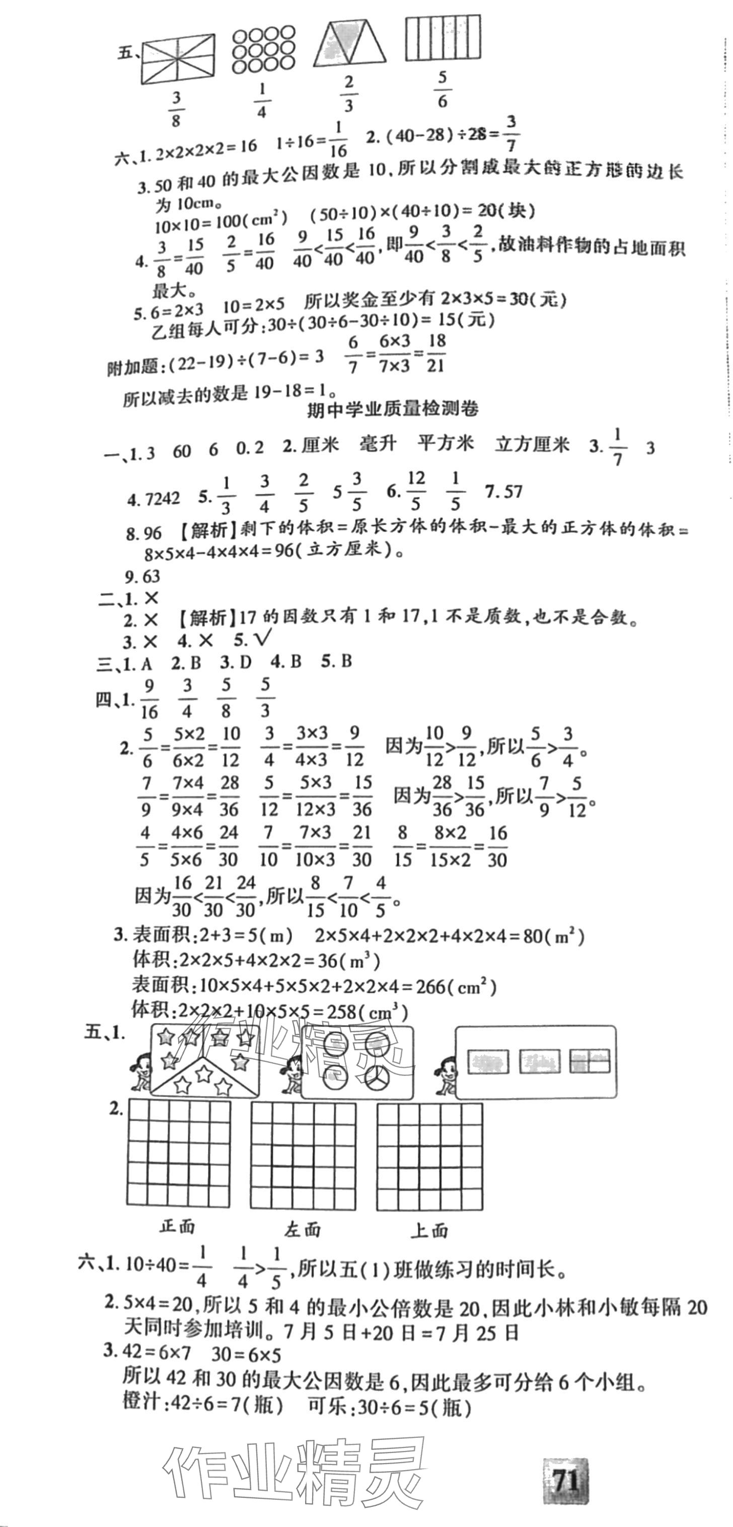 注:目前有些书本章节名称可能整理的还不是很完善,但都是按照顺序排列的,请同学们按照顺序仔细查找。练习册 2024年全程无忧提优卷五年级数学下册人教版 答案主要是用来给同学们做完题方便对答案用的,请勿直接抄袭。
