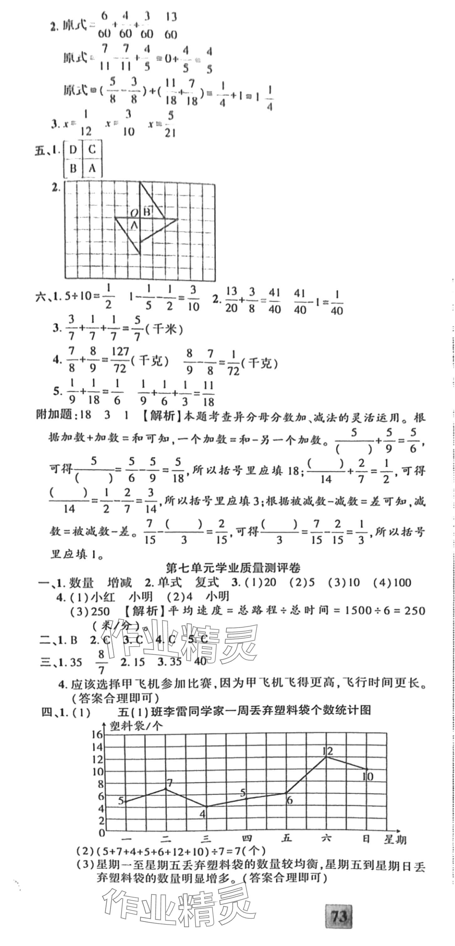 注:目前有些书本章节名称可能整理的还不是很完善,但都是按照顺序排列的,请同学们按照顺序仔细查找。练习册 2024年全程无忧提优卷五年级数学下册人教版 答案主要是用来给同学们做完题方便对答案用的,请勿直接抄袭。