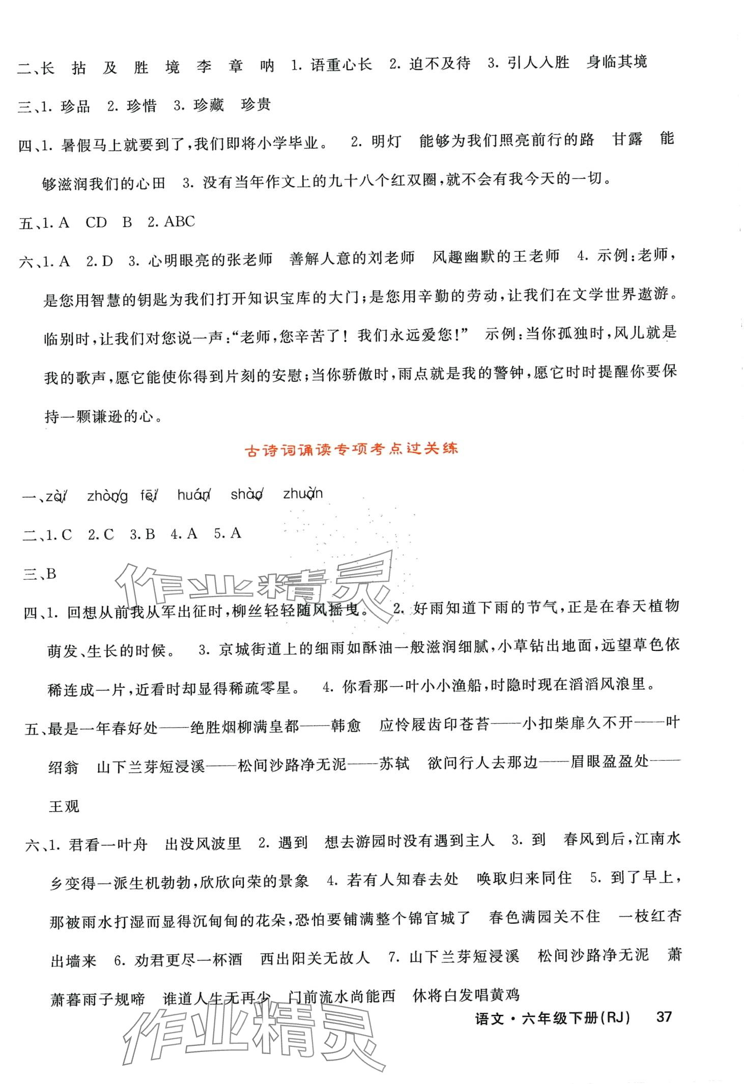 注:目前有些书本章节名称可能整理的还不是很完善,但都是按照顺序排列的,请同学们按照顺序仔细查找。练习册 2024年名校课堂内外六年级语文下册人教版 答案主要是用来给同学们做完题方便对答案用的,请勿直接抄袭。