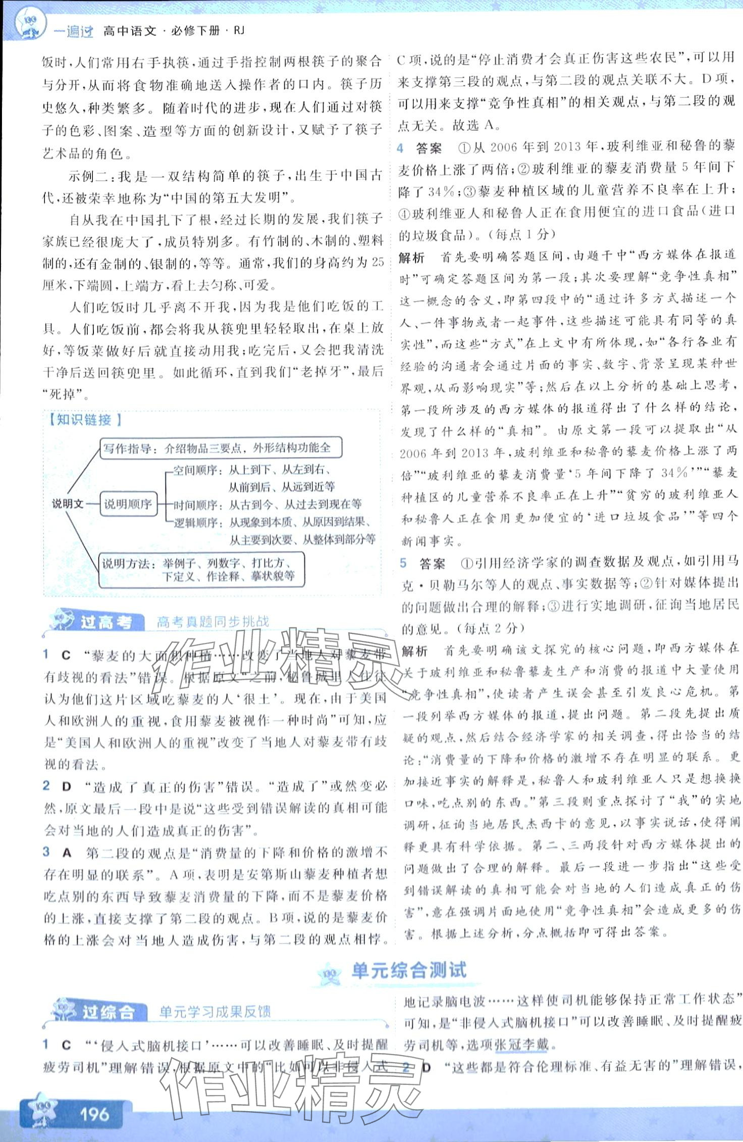 注:目前有些书本章节名称可能整理的还不是很完善,但都是按照顺序排列的,请同学们按照顺序仔细查找。练习册 2024年一遍过高中语文必修下册人教版 答案主要是用来给同学们做完题方便对答案用的,请勿直接抄袭。
