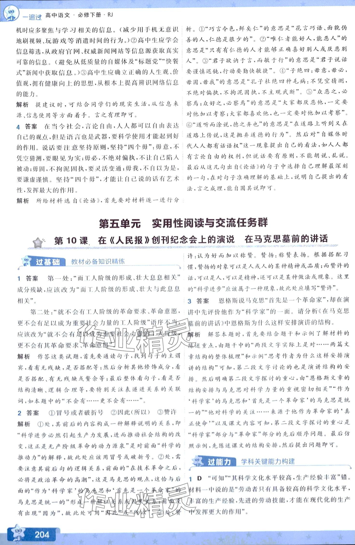 注:目前有些书本章节名称可能整理的还不是很完善,但都是按照顺序排列的,请同学们按照顺序仔细查找。练习册 2024年一遍过高中语文必修下册人教版 答案主要是用来给同学们做完题方便对答案用的,请勿直接抄袭。