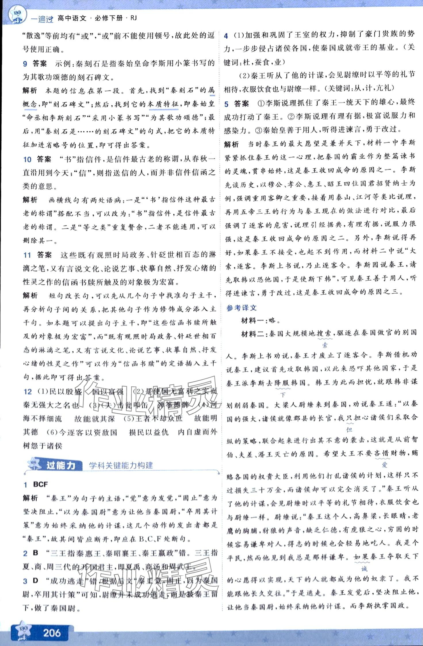 注:目前有些书本章节名称可能整理的还不是很完善,但都是按照顺序排列的,请同学们按照顺序仔细查找。练习册 2024年一遍过高中语文必修下册人教版 答案主要是用来给同学们做完题方便对答案用的,请勿直接抄袭。