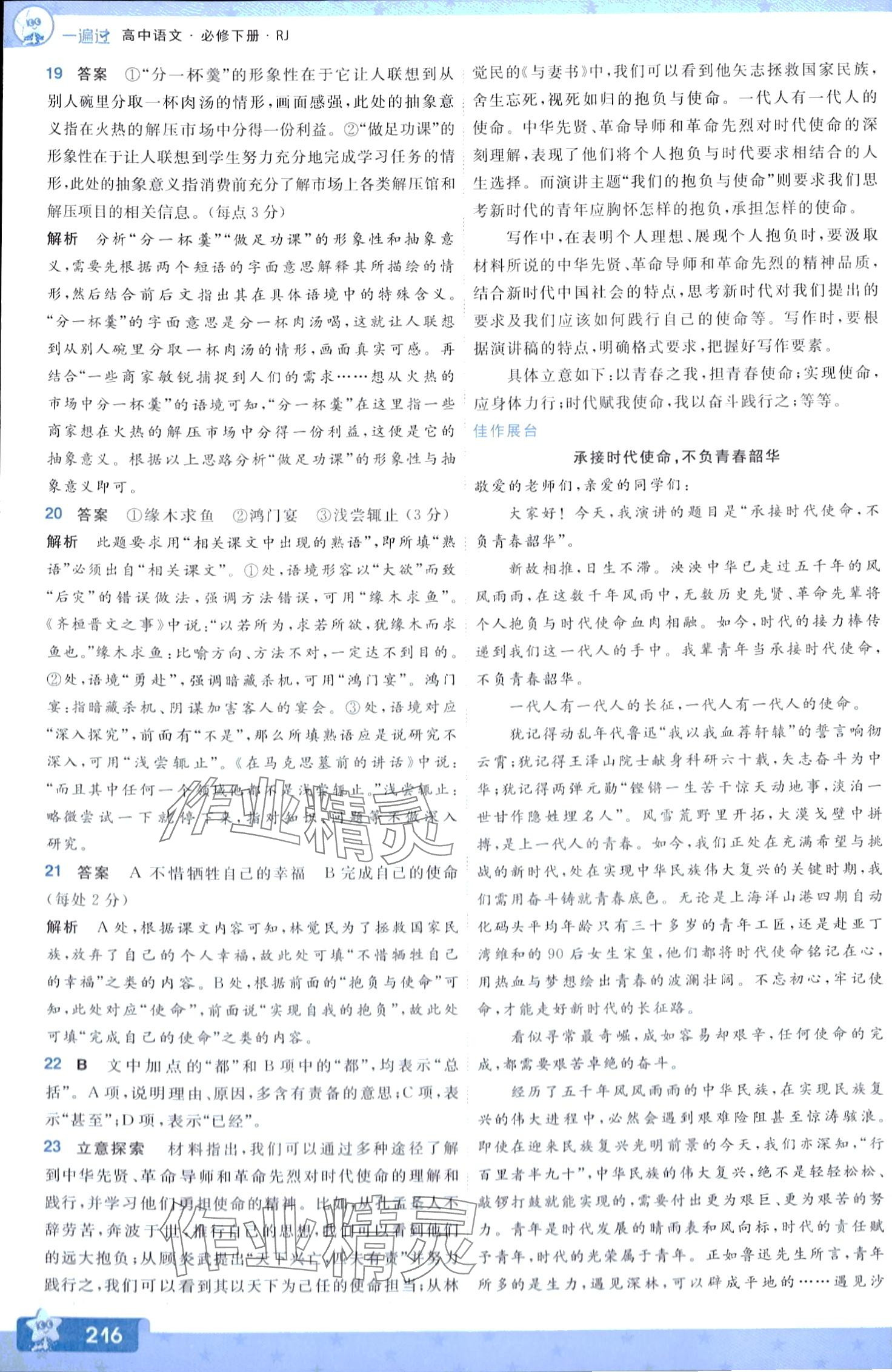 注:目前有些书本章节名称可能整理的还不是很完善,但都是按照顺序排列的,请同学们按照顺序仔细查找。练习册 2024年一遍过高中语文必修下册人教版 答案主要是用来给同学们做完题方便对答案用的,请勿直接抄袭。