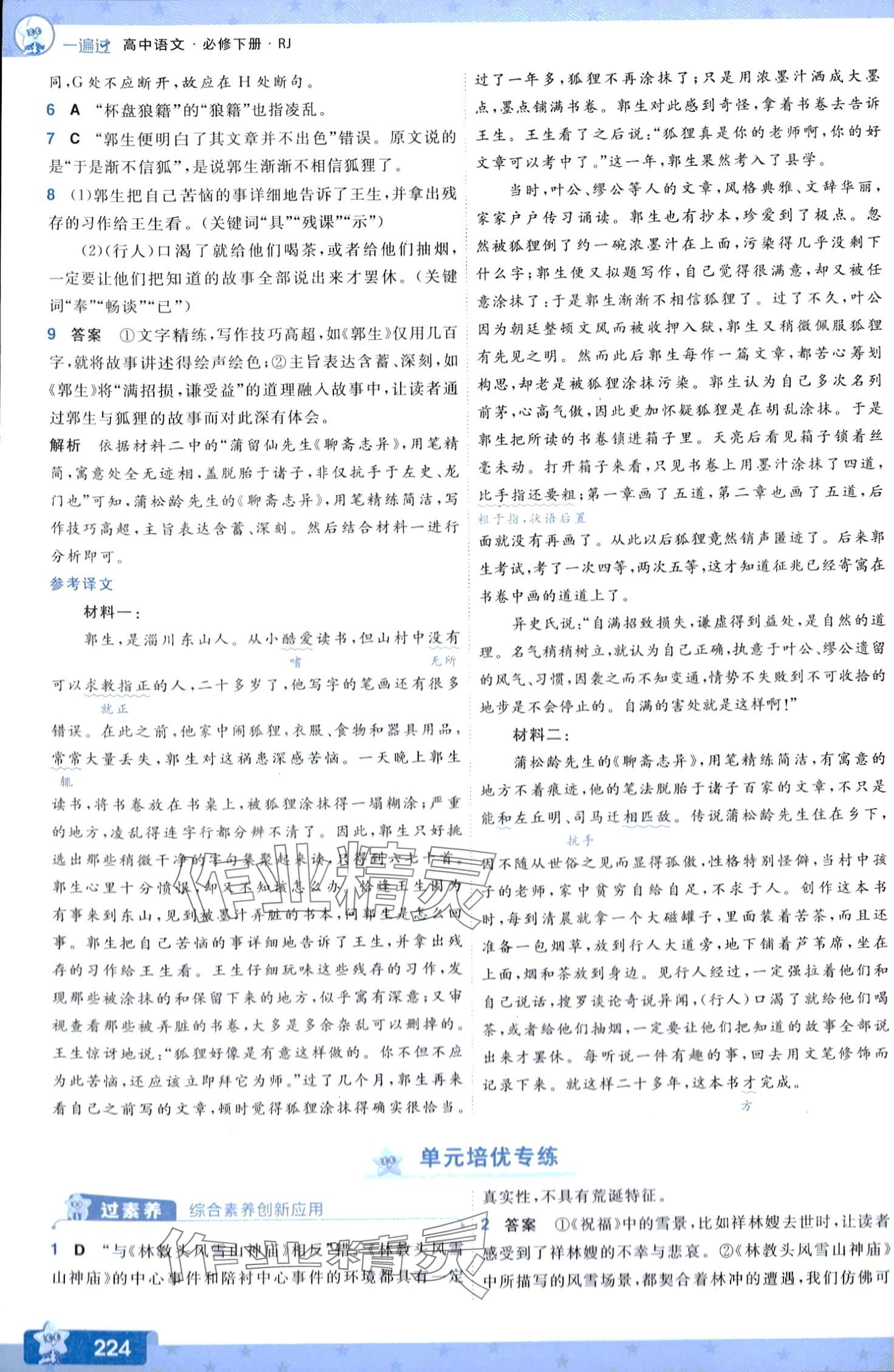注:目前有些书本章节名称可能整理的还不是很完善,但都是按照顺序排列的,请同学们按照顺序仔细查找。练习册 2024年一遍过高中语文必修下册人教版 答案主要是用来给同学们做完题方便对答案用的,请勿直接抄袭。