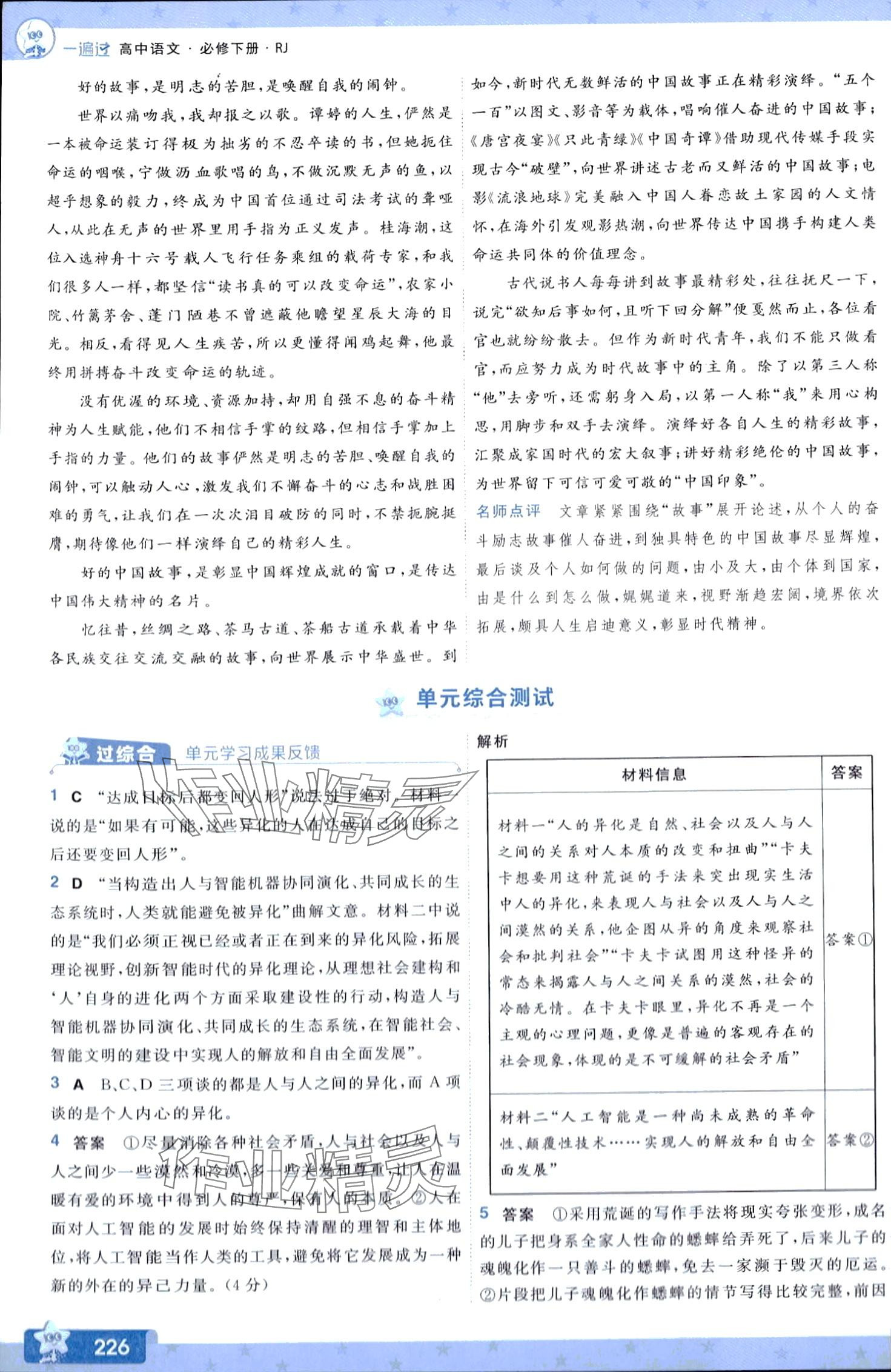 注:目前有些书本章节名称可能整理的还不是很完善,但都是按照顺序排列的,请同学们按照顺序仔细查找。练习册 2024年一遍过高中语文必修下册人教版 答案主要是用来给同学们做完题方便对答案用的,请勿直接抄袭。