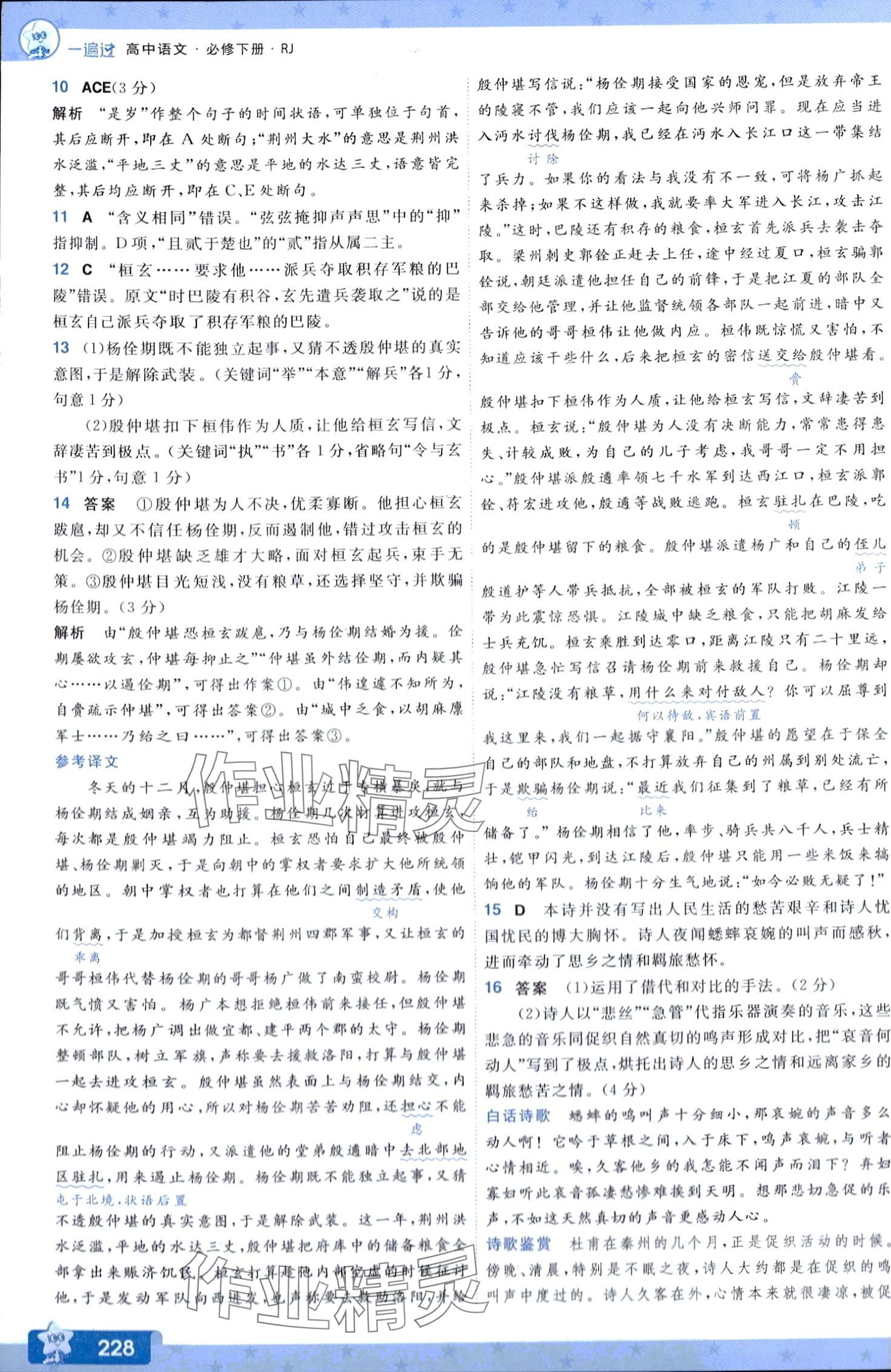注:目前有些书本章节名称可能整理的还不是很完善,但都是按照顺序排列的,请同学们按照顺序仔细查找。练习册 2024年一遍过高中语文必修下册人教版 答案主要是用来给同学们做完题方便对答案用的,请勿直接抄袭。