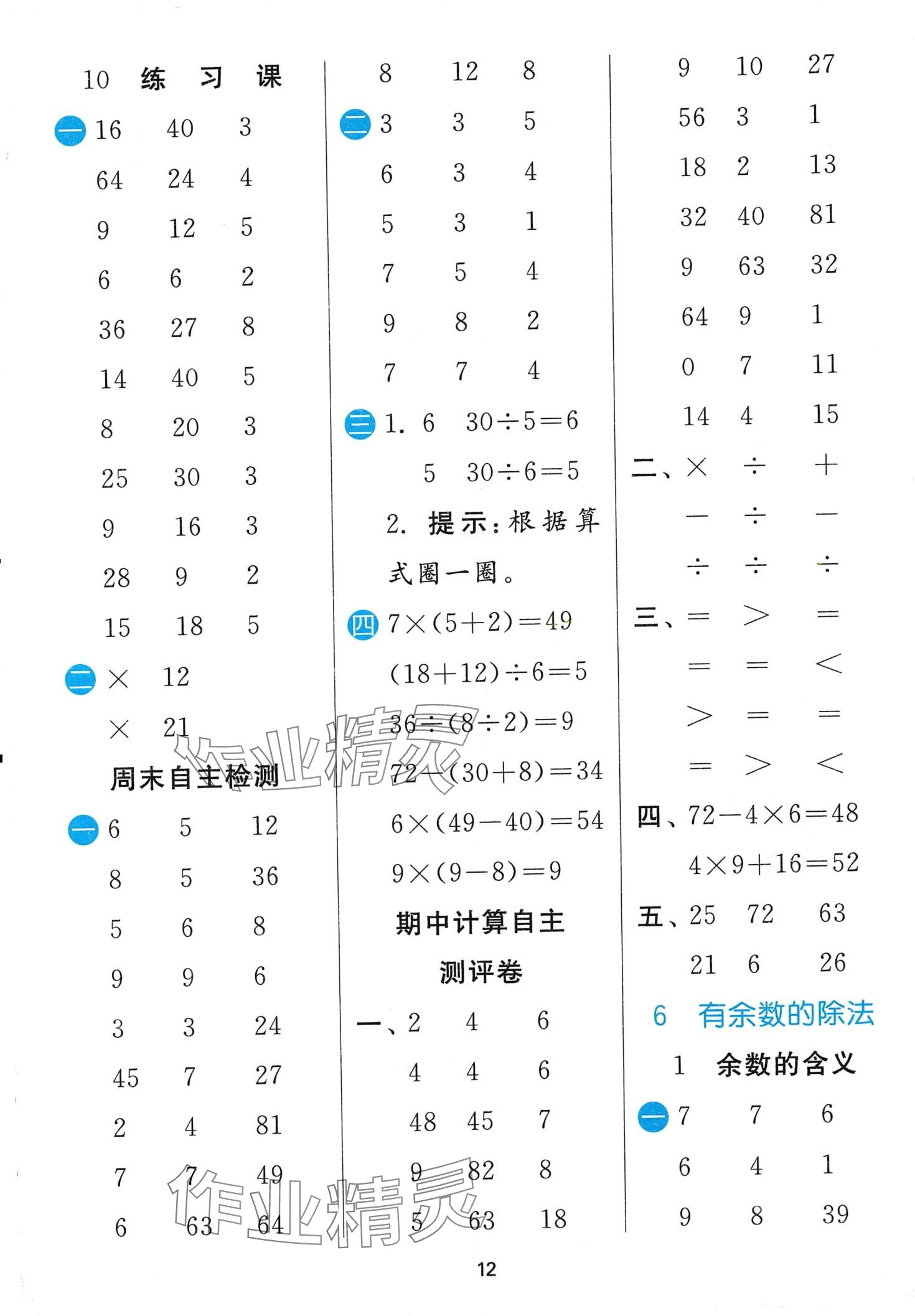 注:目前有些书本章节名称可能整理的还不是很完善,但都是按照顺序排列的,请同学们按照顺序仔细查找。练习册 2024年实验班计算高手二年级数学下册人教版 答案主要是用来给同学们做完题方便对答案用的,请勿直接抄袭。