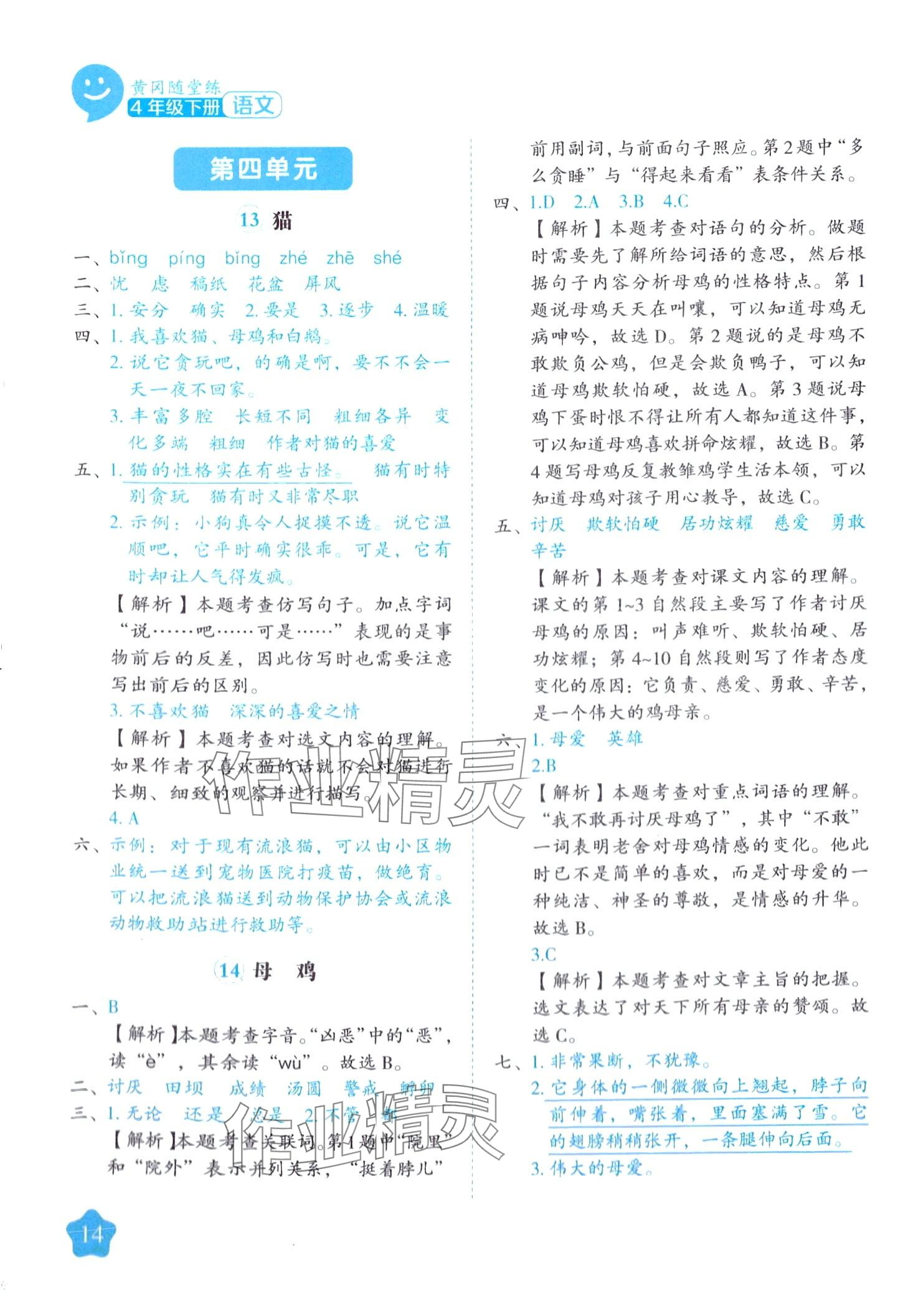注:目前有些书本章节名称可能整理的还不是很完善,但都是按照顺序排列的,请同学们按照顺序仔细查找。练习册 2024年黄冈随堂练四年级语文下册人教版 答案主要是用来给同学们做完题方便对答案用的,请勿直接抄袭。