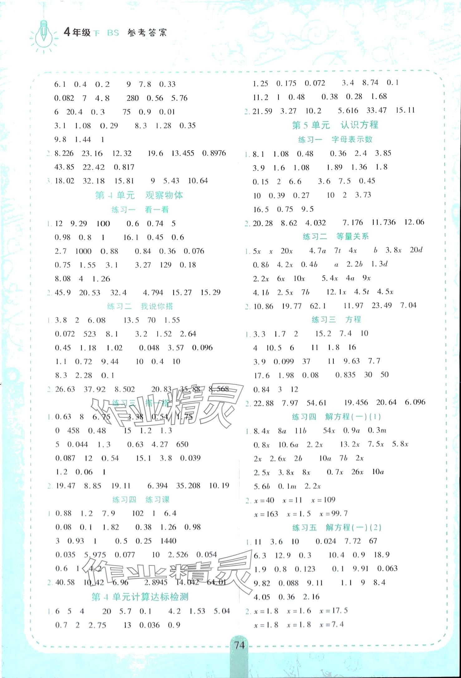 注:目前有些书本章节名称可能整理的还不是很完善,但都是按照顺序排列的,请同学们按照顺序仔细查找。练习册 2024年练到位口算一练通四年级下册北师大版 答案主要是用来给同学们做完题方便对答案用的,请勿直接抄袭。