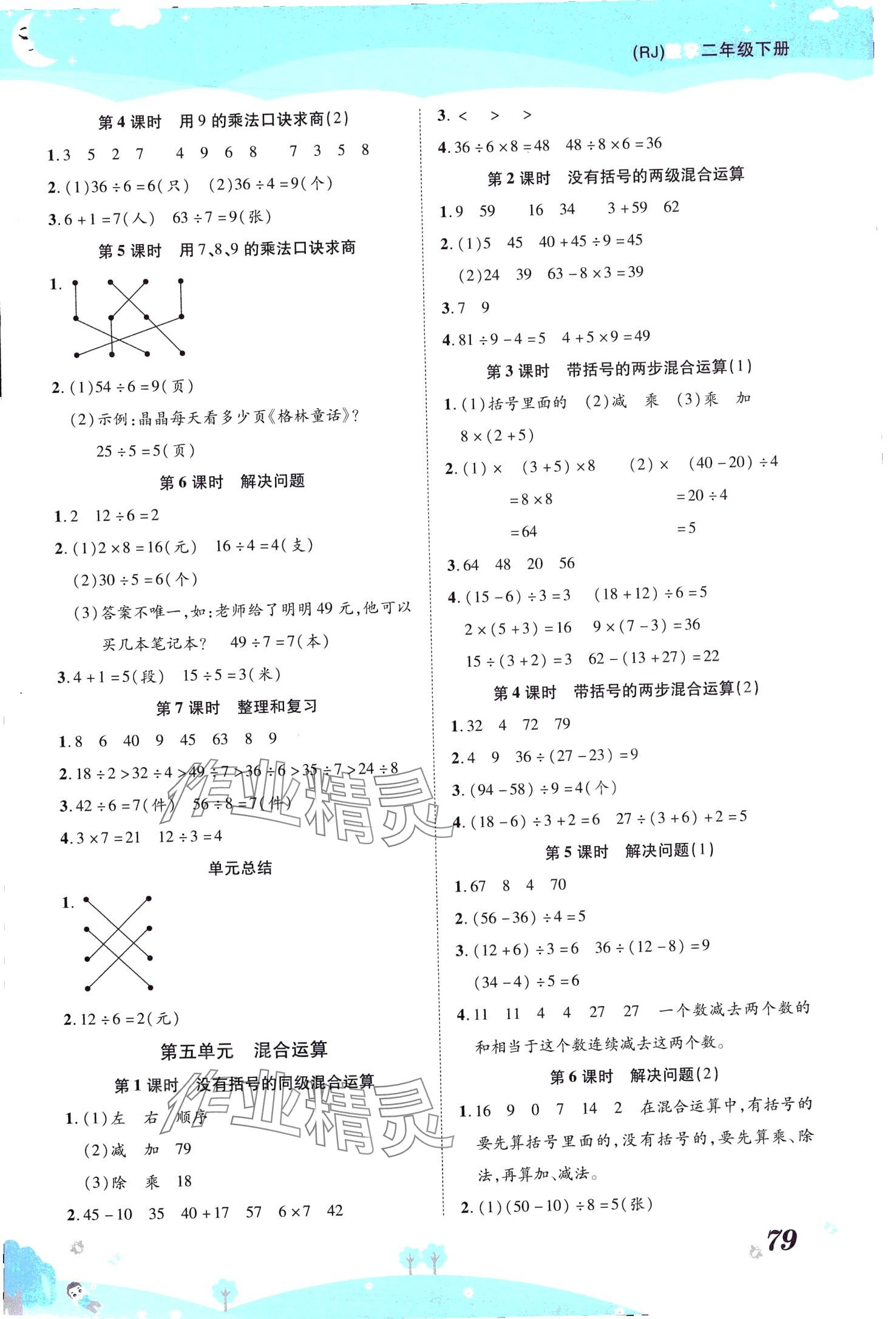 注:目前有些书本章节名称可能整理的还不是很完善,但都是按照顺序排列的,请同学们按照顺序仔细查找。练习册 2024年黄冈课课练二年级数学下册人教版 答案主要是用来给同学们做完题方便对答案用的,请勿直接抄袭。