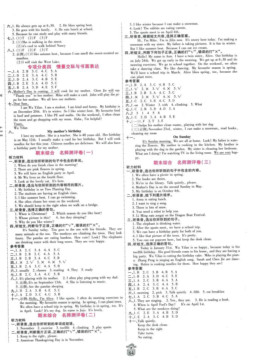 注:目前有些书本章节名称可能整理的还不是很完善,但都是按照顺序排列的,请同学们按照顺序仔细查找。练习册 2024年豫鹤翔名师100分五年级英语下册人教版 答案主要是用来给同学们做完题方便对答案用的,请勿直接抄袭。