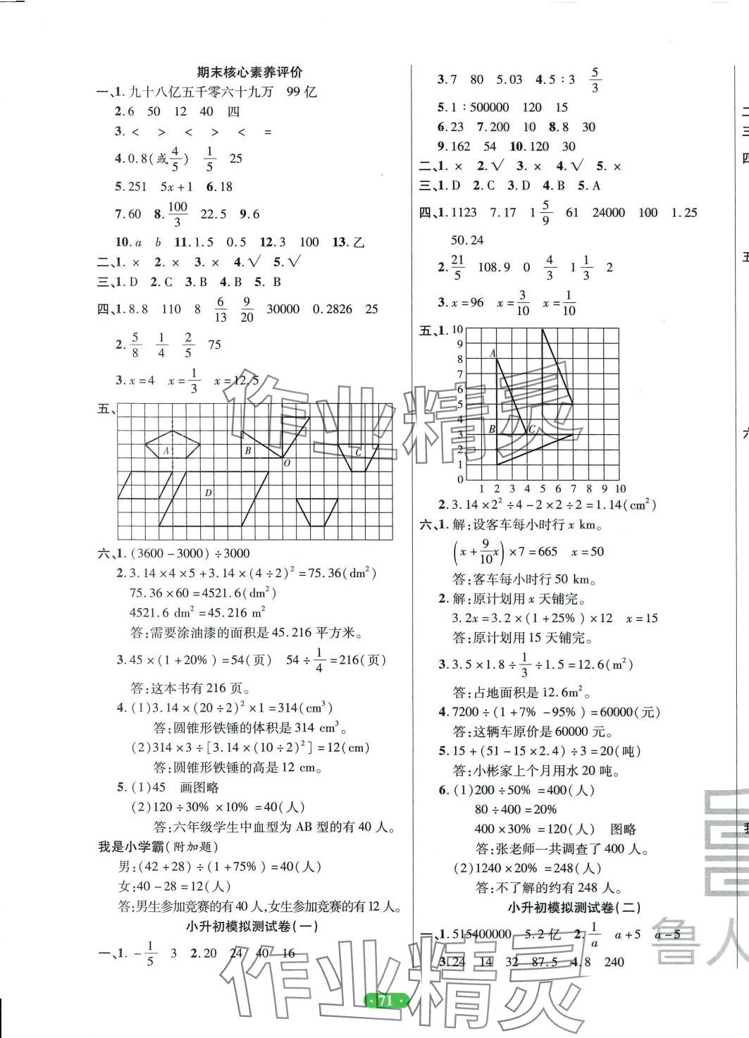 注:目前有些书本章节名称可能整理的还不是很完善,但都是按照顺序排列的,请同学们按照顺序仔细查找。练习册 2024年一卷通小学核心素养评价六年级数学下册人教版 答案主要是用来给同学们做完题方便对答案用的,请勿直接抄袭。