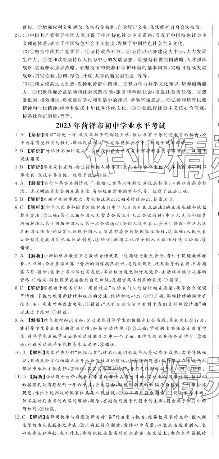 注:目前有些书本章节名称可能整理的还不是很完善,但都是按照顺序排列的,请同学们按照顺序仔细查找。练习册 2024年赢在中考广州出版社道德与法治山东专版 答案主要是用来给同学们做完题方便对答案用的,请勿直接抄袭。