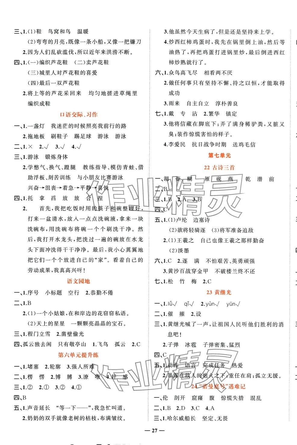 注:目前有些书本章节名称可能整理的还不是很完善,但都是按照顺序排列的,请同学们按照顺序仔细查找。练习册 2024年淘金先锋课堂四年级语文下册人教版 答案主要是用来给同学们做完题方便对答案用的,请勿直接抄袭。