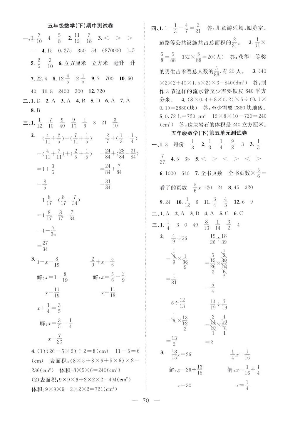 注:目前有些书本章节名称可能整理的还不是很完善,但都是按照顺序排列的,请同学们按照顺序仔细查找。练习册 2024年阳光全优大考卷五年级数学下册北师大版 答案主要是用来给同学们做完题方便对答案用的,请勿直接抄袭。