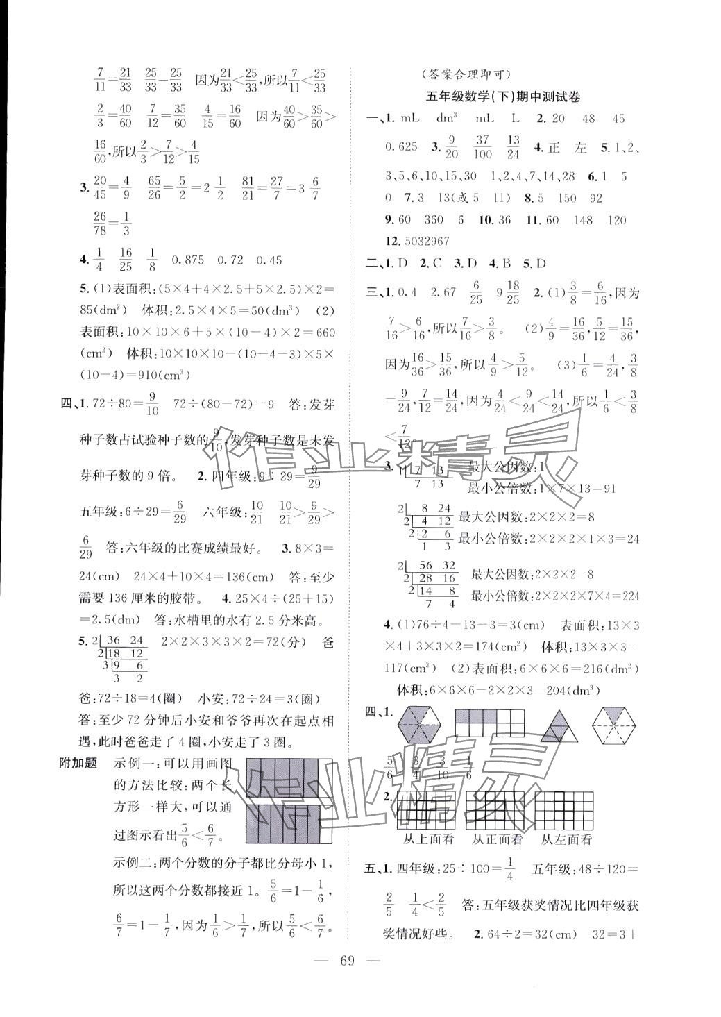 注:目前有些书本章节名称可能整理的还不是很完善,但都是按照顺序排列的,请同学们按照顺序仔细查找。练习册 2024年阳光全优大考卷五年级数学下册人教版 答案主要是用来给同学们做完题方便对答案用的,请勿直接抄袭。