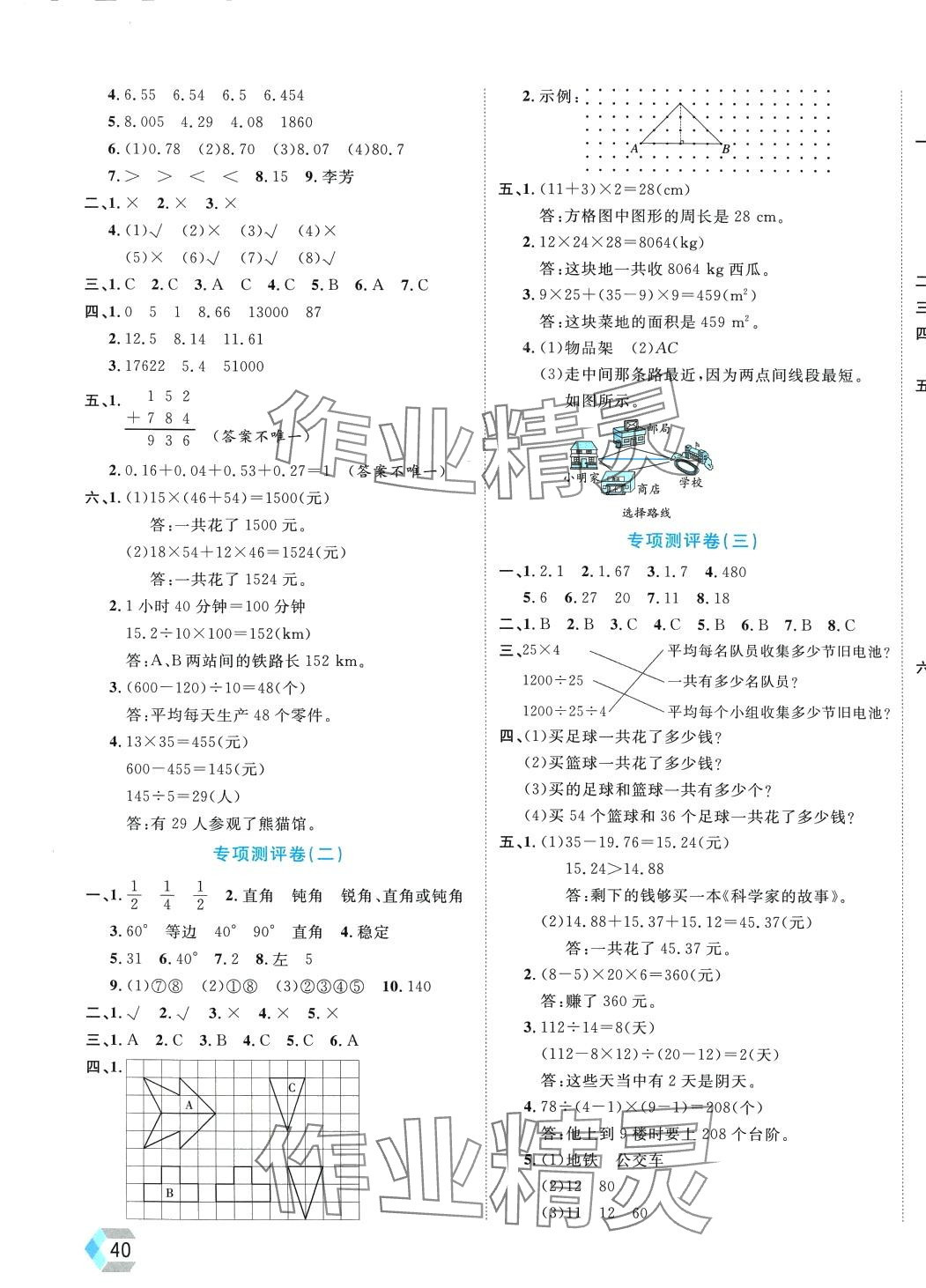 注:目前有些书本章节名称可能整理的还不是很完善,但都是按照顺序排列的,请同学们按照顺序仔细查找。练习册 2024年全优100分学霸必刷卷四年级数学下册人教版 答案主要是用来给同学们做完题方便对答案用的,请勿直接抄袭。