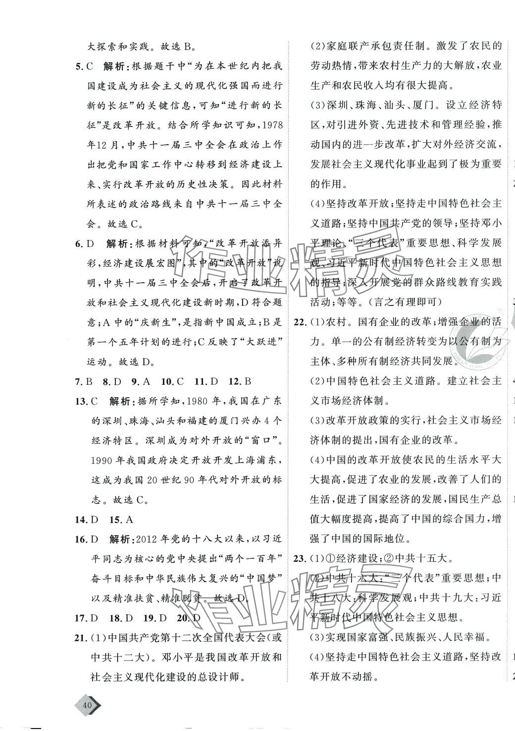 注:目前有些书本章节名称可能整理的还不是很完善,但都是按照顺序排列的,请同学们按照顺序仔细查找。练习册 2024年优加密卷八年级历史下册人教版 答案主要是用来给同学们做完题方便对答案用的,请勿直接抄袭。